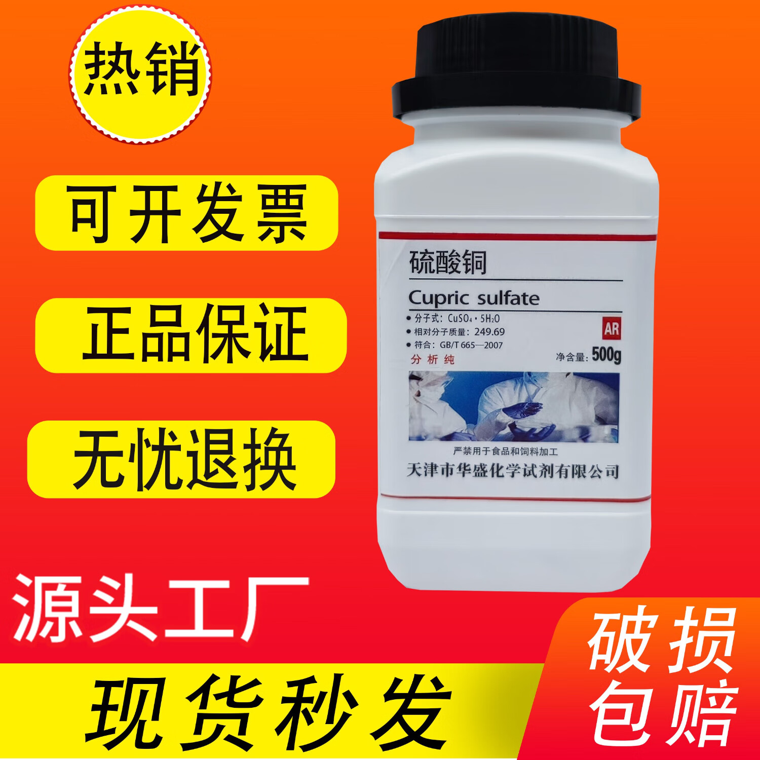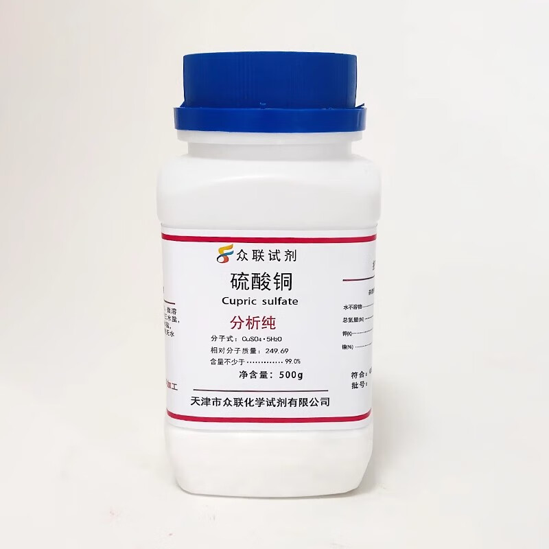 Copper sulfate crystal copper sulfate pentahydrate powder student crystallization experiment AR500g analytical pure blue vitriol chemical reagent 50g trial pack copper sulfate pentahydrate