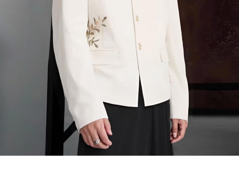 ROMON New Chinese Style Stand Collar Suit Peony Butterfly Embroidered Mao Suit Groom Wedding Chinese Style Jacket Men's Tang Suit Black Single Suit XL