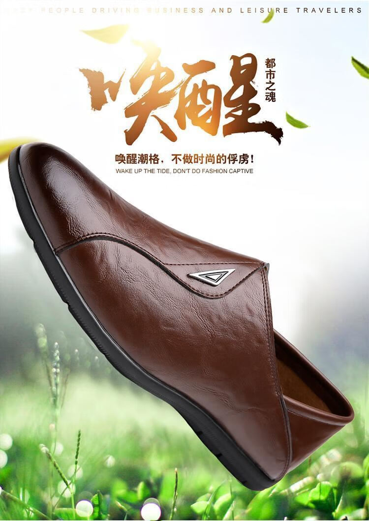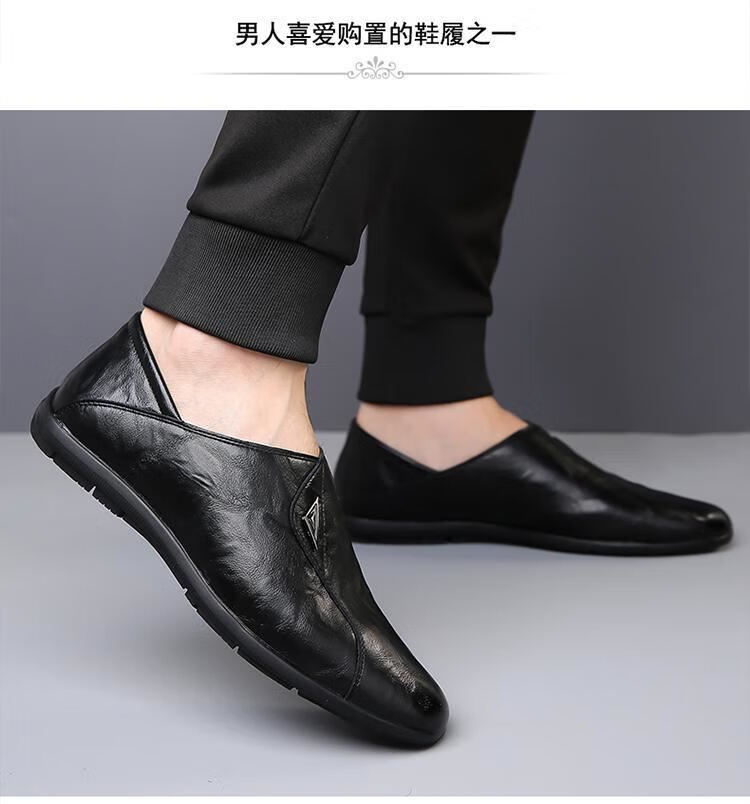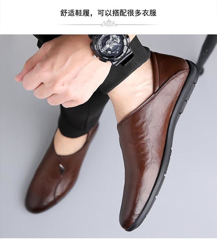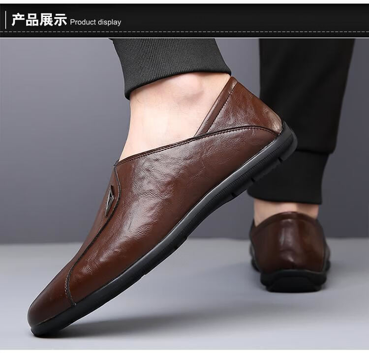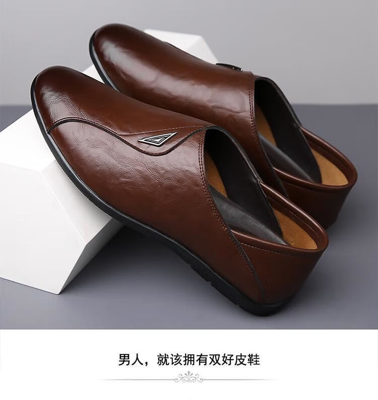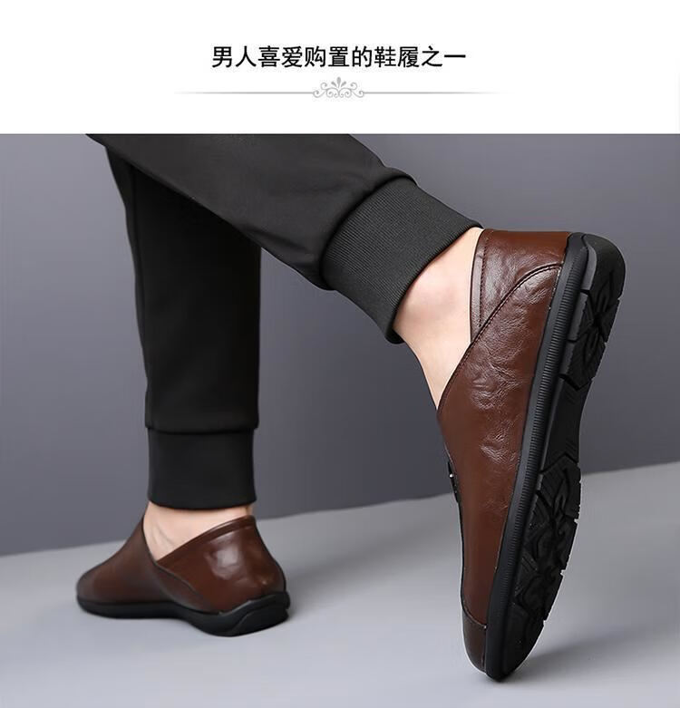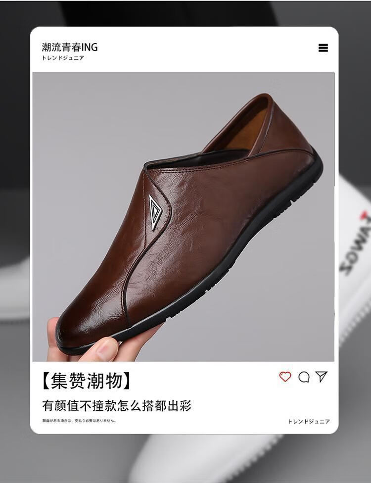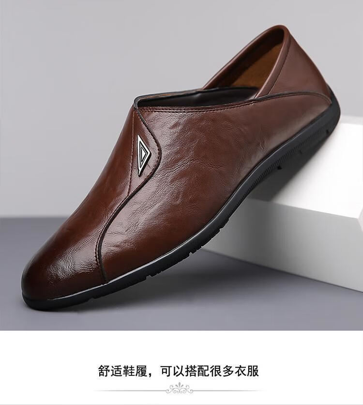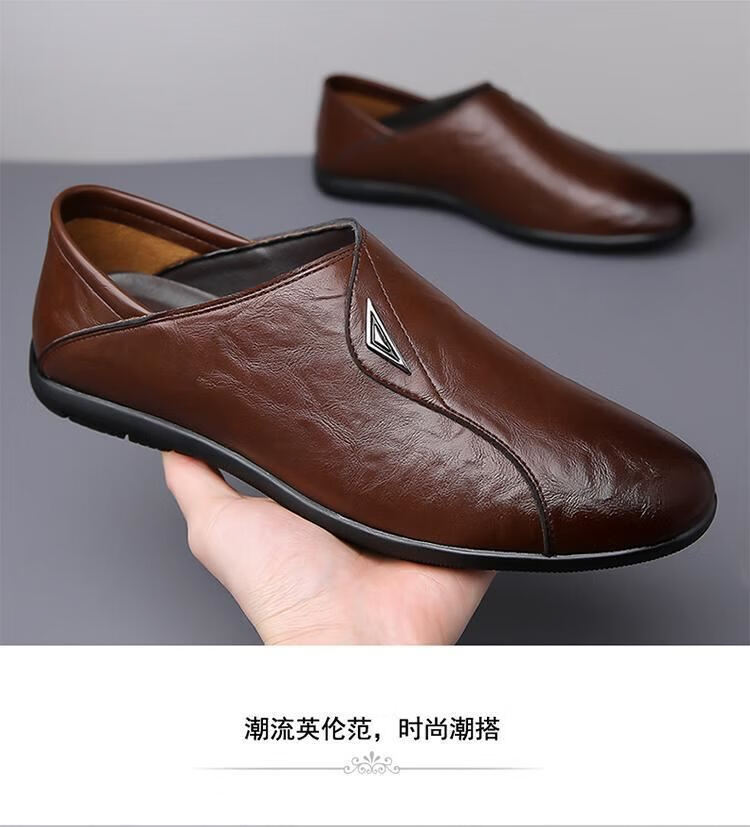 CARTELO Genuine Leather Men's Shoes 2025 Spring New Translucent Business Casual Leather Shoes Men's Versatile Driving Shoes Slip-On Beanie Shoes Trendy Brown Leather Version 42