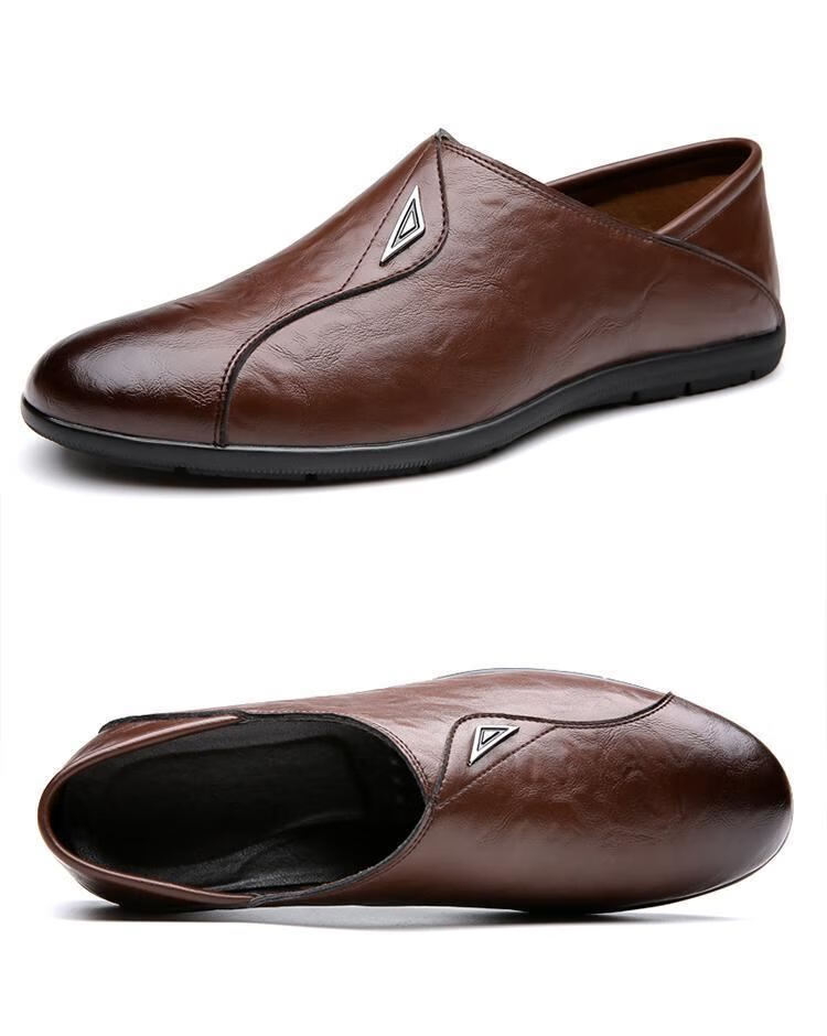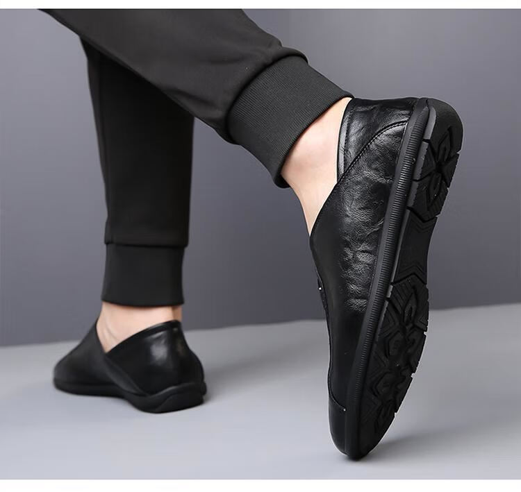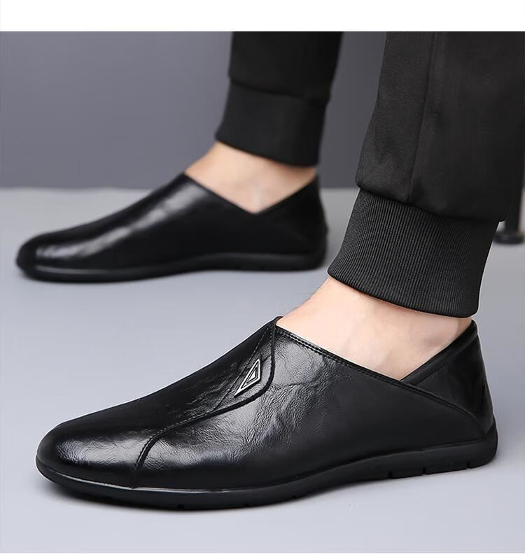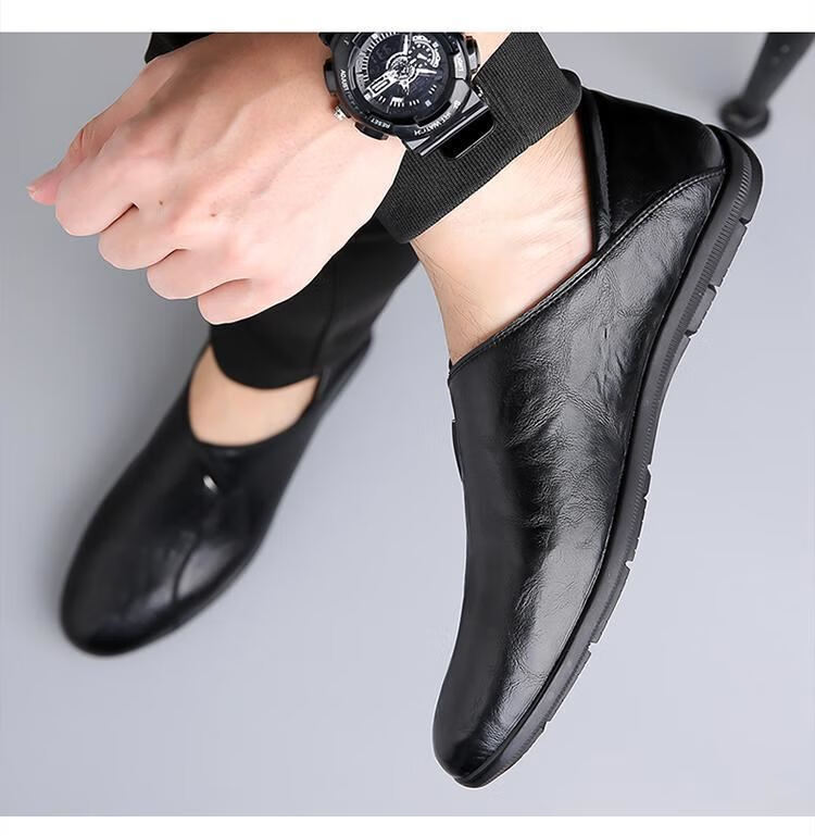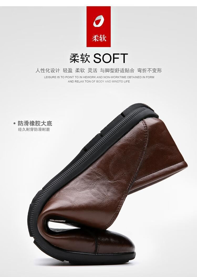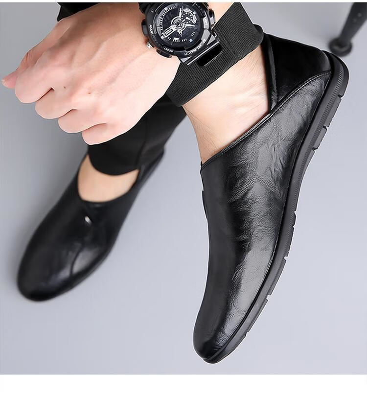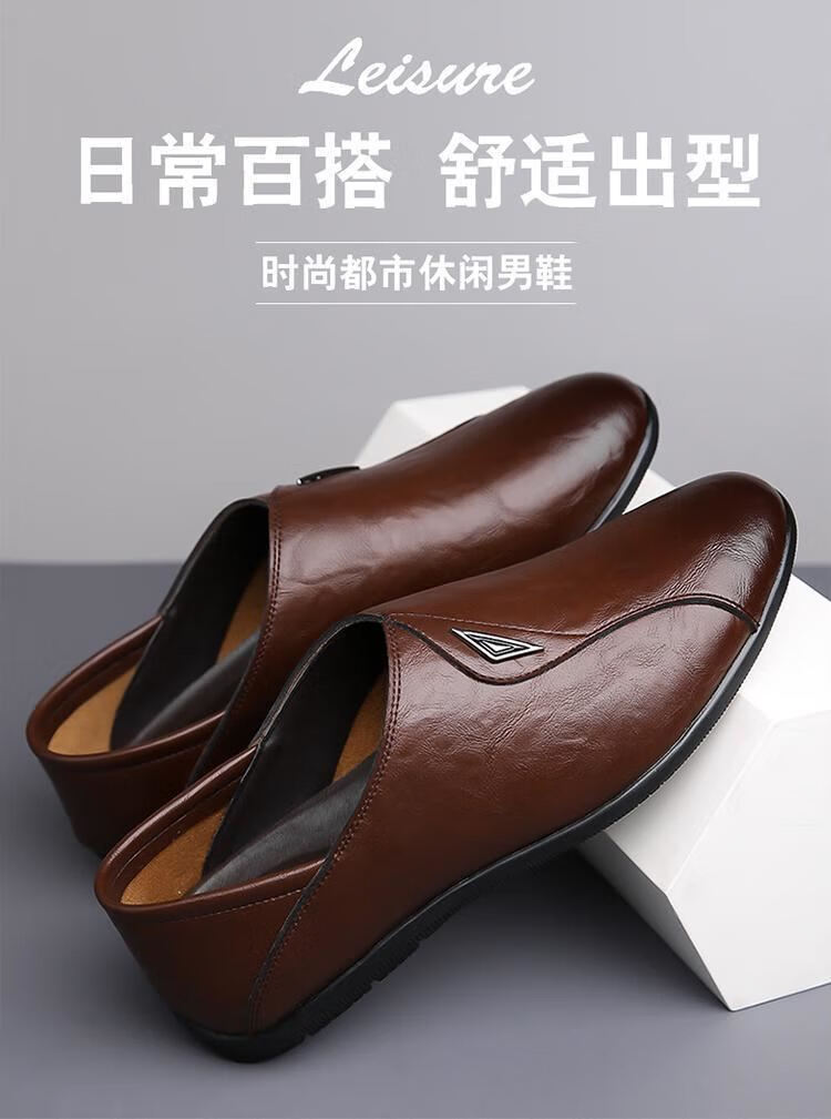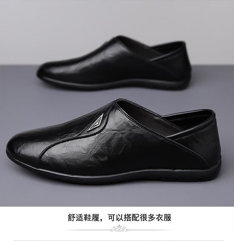 CARTELO Genuine Leather Men's Shoes 2025 Spring New Translucent Business Casual Leather Shoes Men's Versatile Driving Shoes Slip-On Beanie Shoes Trendy Brown Leather Version 42