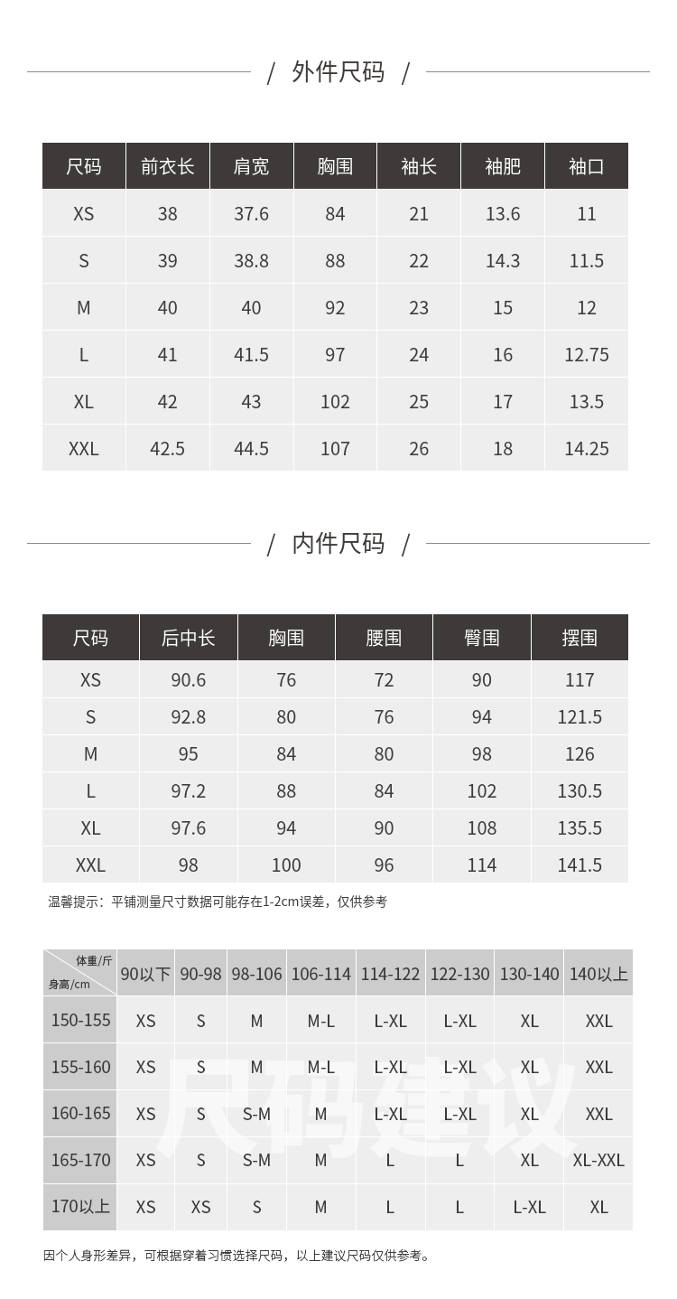 China (cm) 160-165/84-86 165-170 / 88-90 167-172 / 92-96 168-173 / 98-102 170-176 / 106-110
