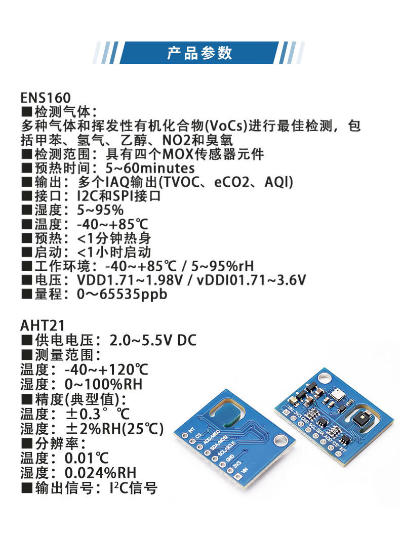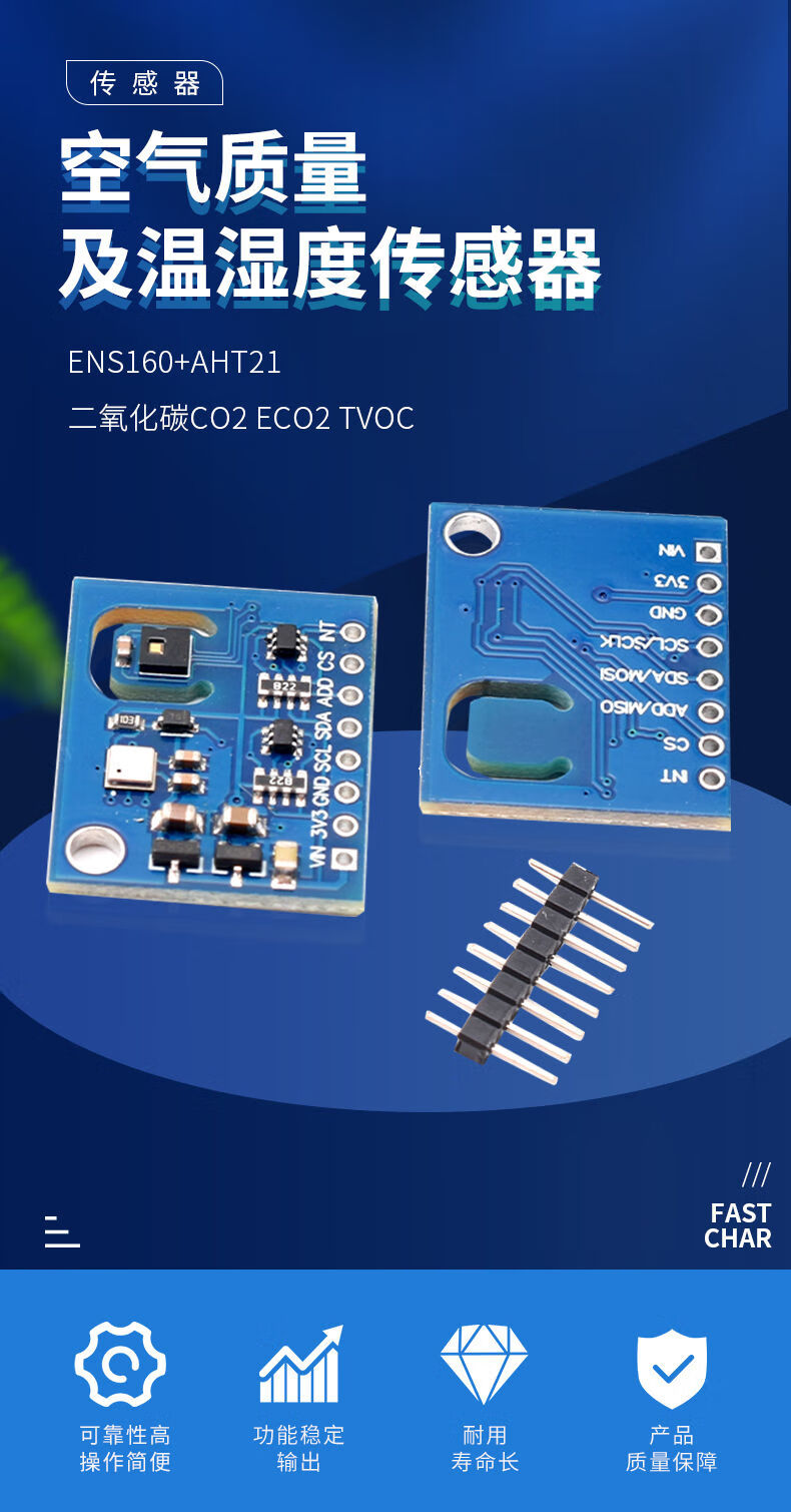 ENS160+AHT21 carbon dioxide CO2 eCO2 TVOC air quality and temperature and humidity sensor ens160+aht21 air quality temperature and humidity module