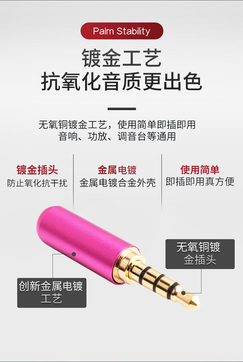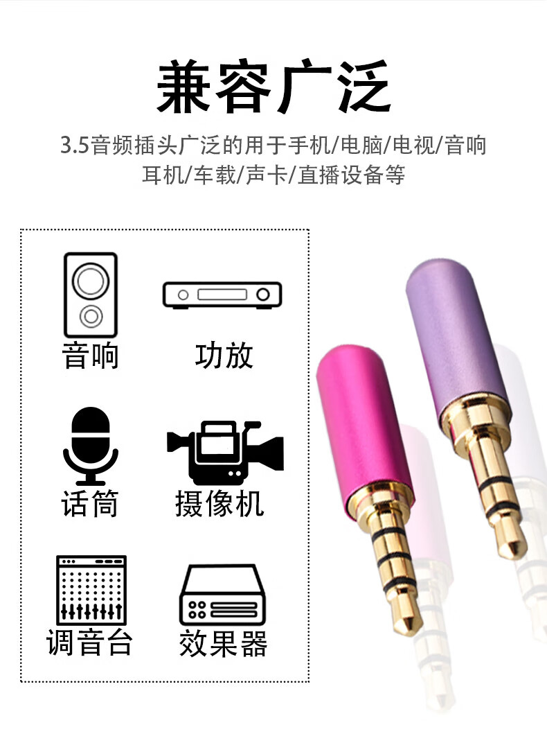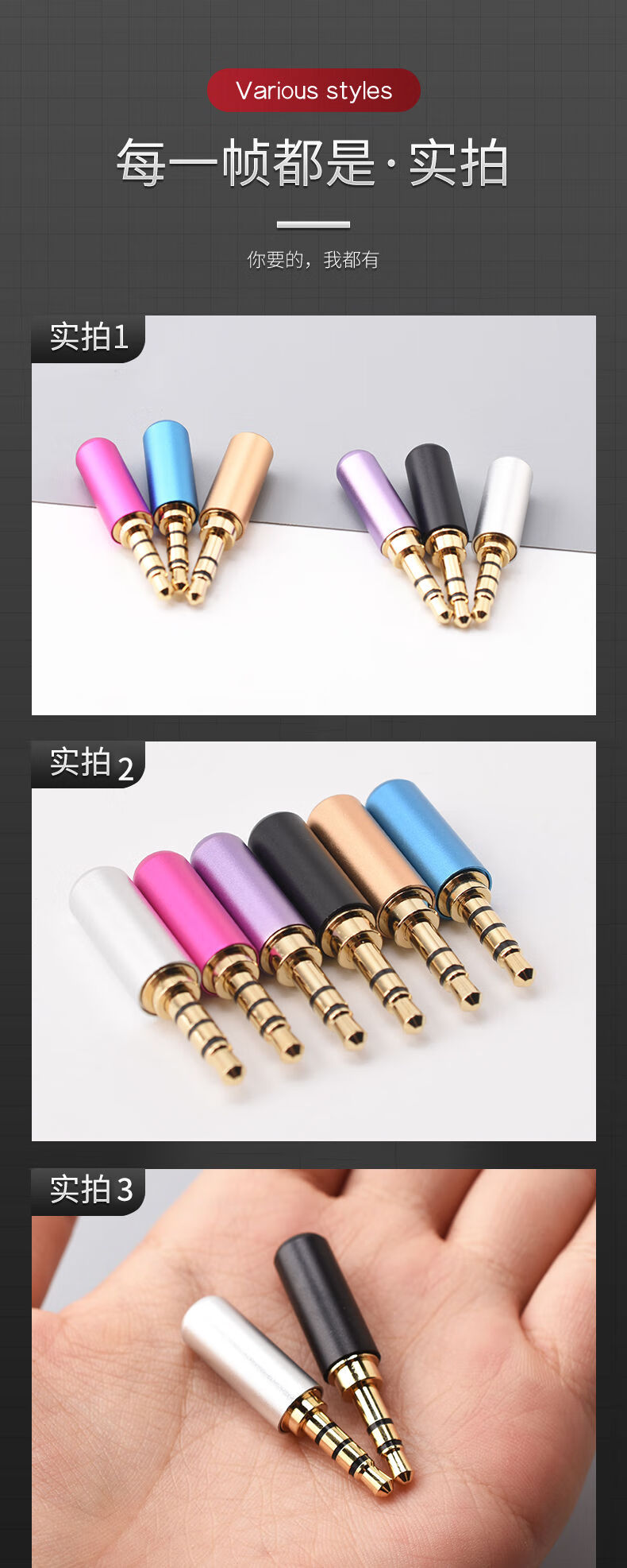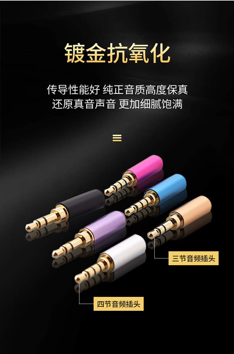 3.5MM headphone audio plug four-section audio welding head three-section headphone plug 3.5 stereo audio head 3.5mm three-section audio plug black
