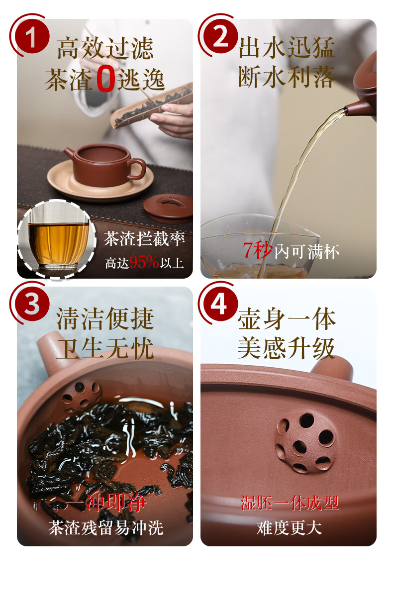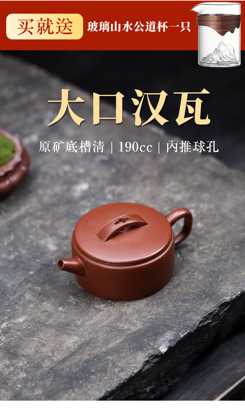 Zilaishun Yixing original ore purple mud bottom trough clear teapot purple clay teapot pure handmade practical kung fu tea set large mouth Hanwa teapot large mouth Hanwa teapot free fair cup 190ml