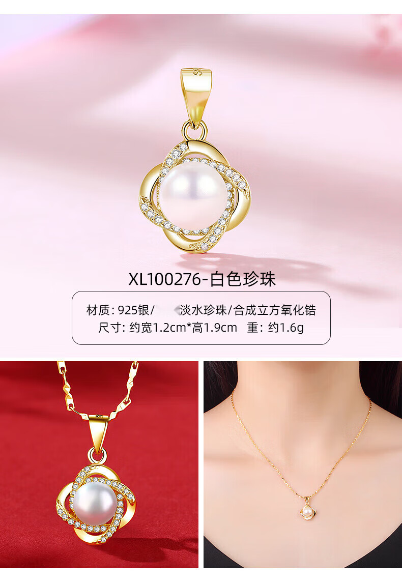 Fat Donglai quality single pearl pendant without chain 925 silver four-leaf clover necklace for women 18k gold and (gold single pendant) XL100287-small waist