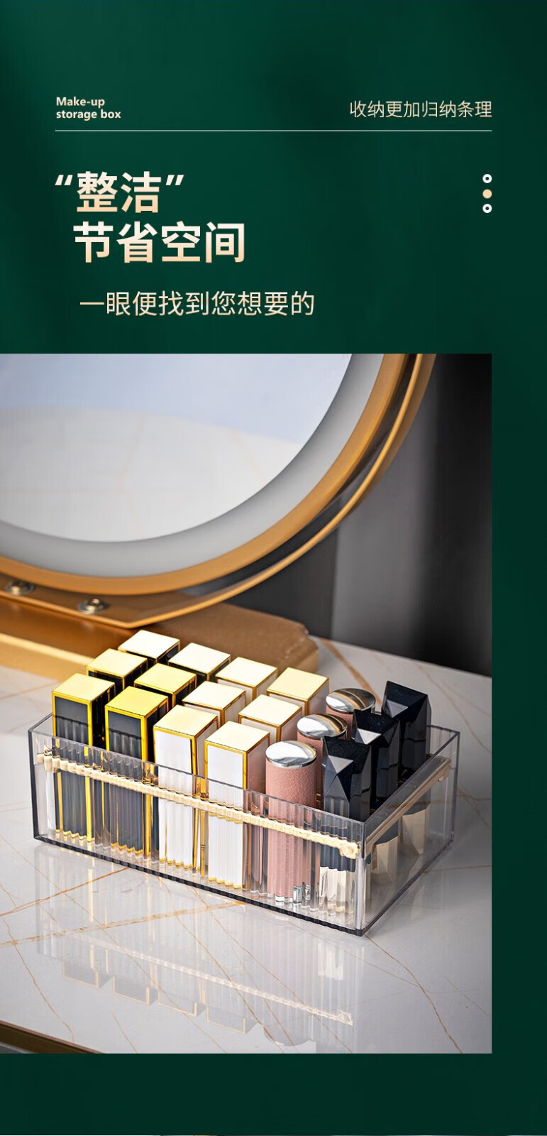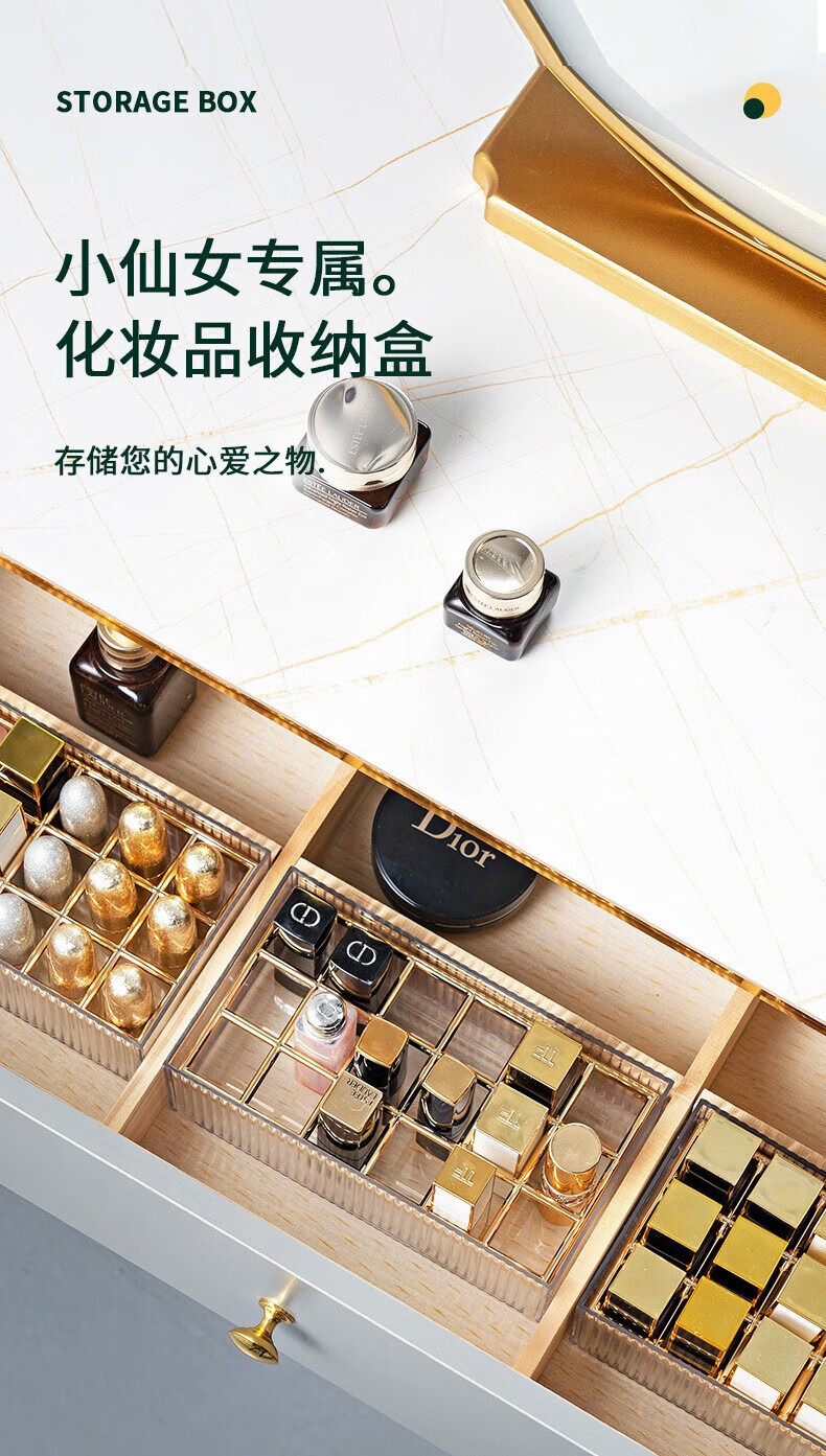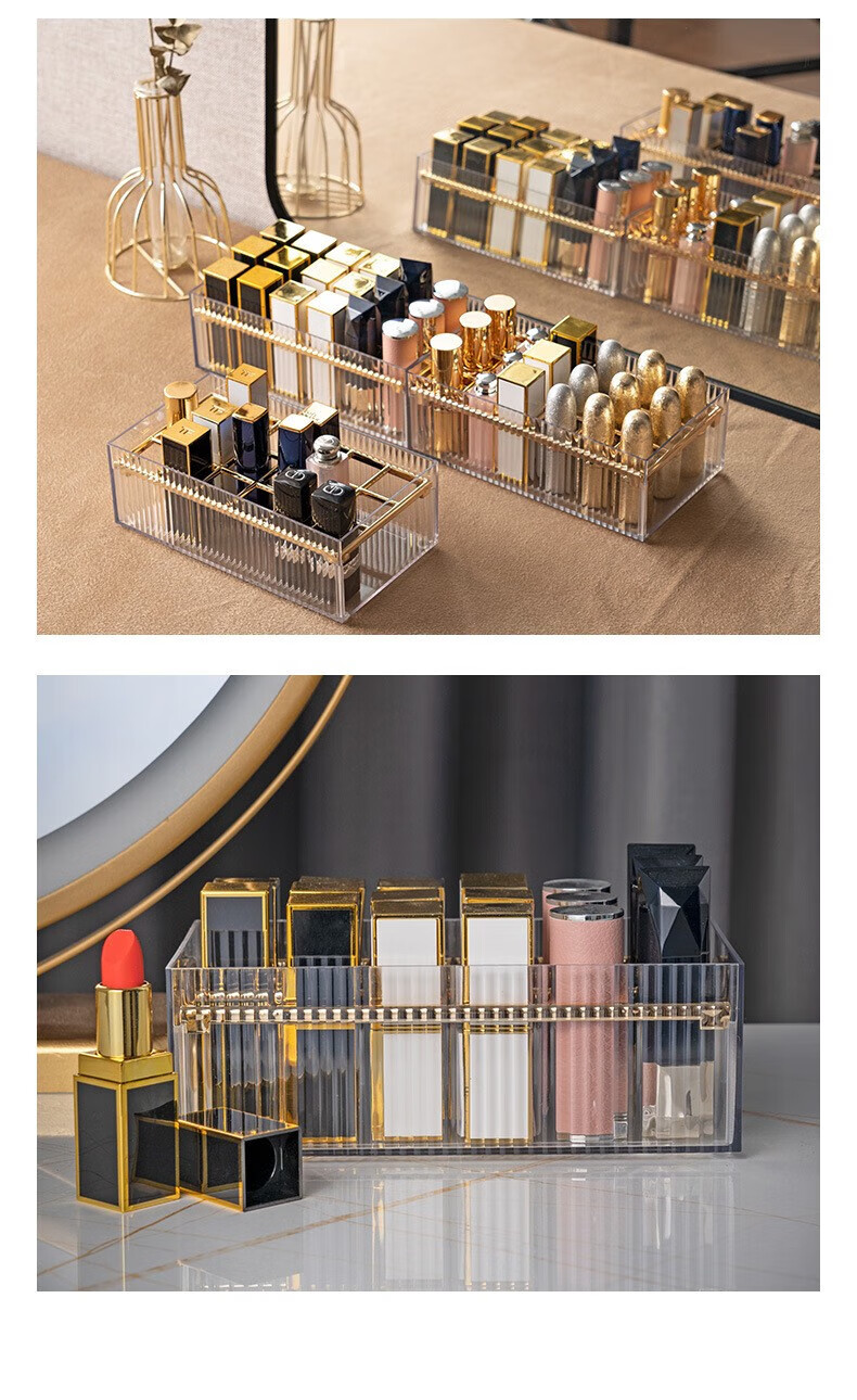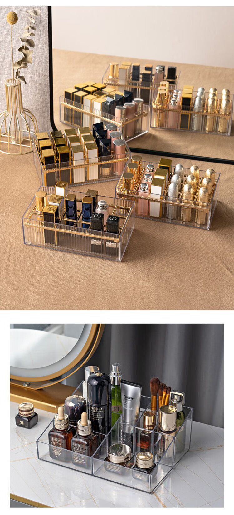 Xiyin lipstick storage box cosmetics storage box desktop 18-grid lip glaze lipstick lip gloss storage box lipstick storage box transparent gold edge