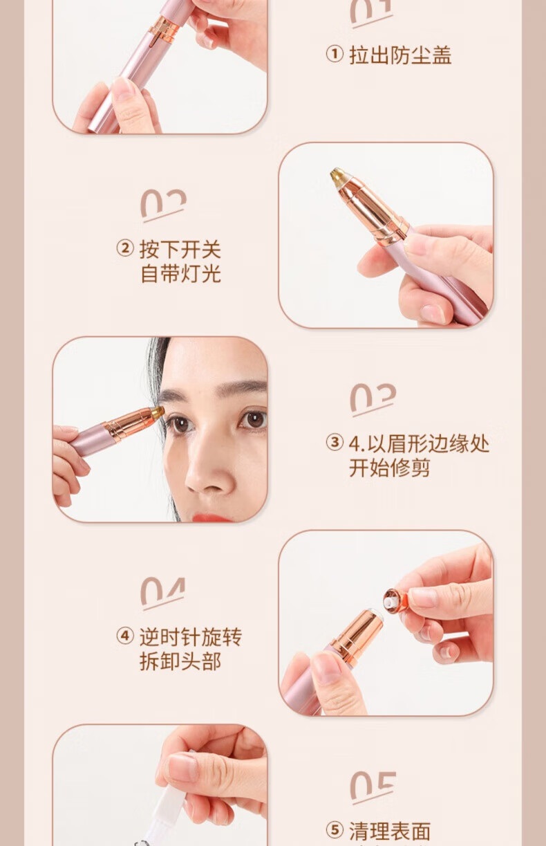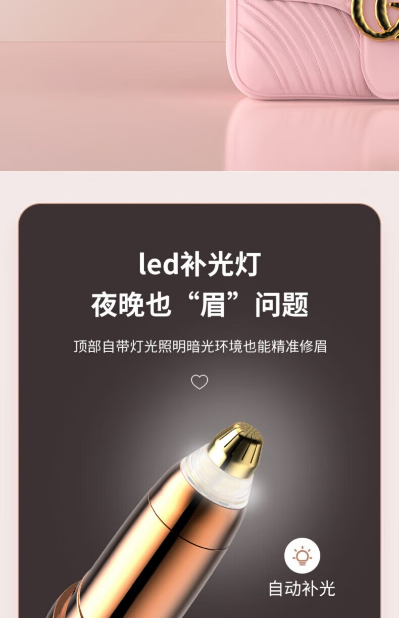 JCZS German quality electric eyebrow trimmer, automatic eyebrow trimming artifact, eyebrow shaving pen trimmer, special eyebrow shaving instrument for men and women, long-lasting battery life-rose gold rechargeable model