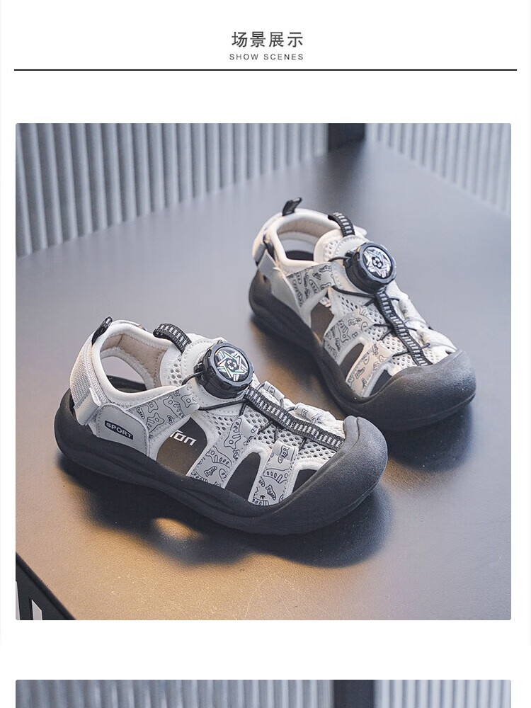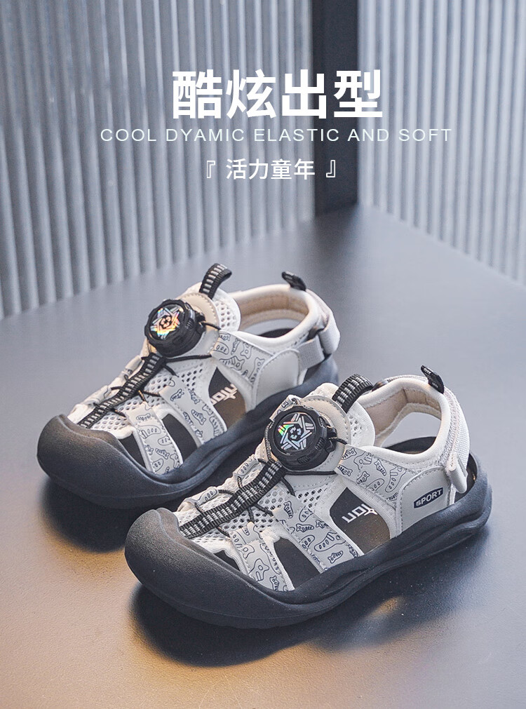 Brand OEM Children's 2025 Summer Boys' Baotou Sandals Casual Soft Bottom Girls Baby Beach Shoes Beige 29 Inner Length 18.8cm