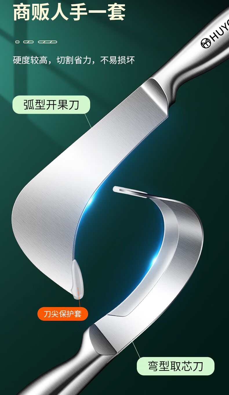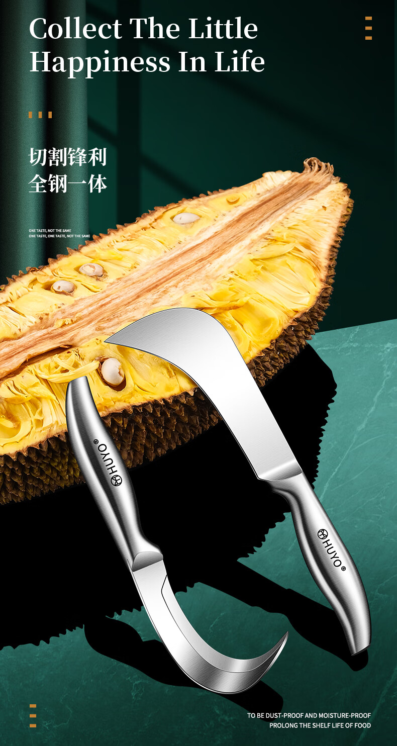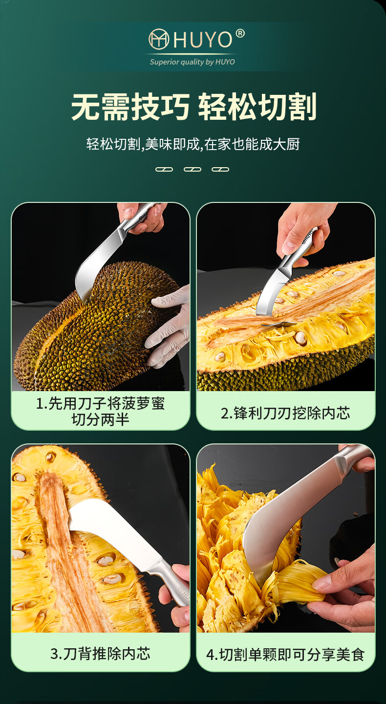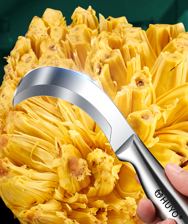 HUYO Stainless Steel Jackfruit Special Knife Commercial Fruit Scimitar Shell Opening and Meat Removal Tool Durian Jackfruit Coring Artifact Curved Coring Knife Special for Jackfruit