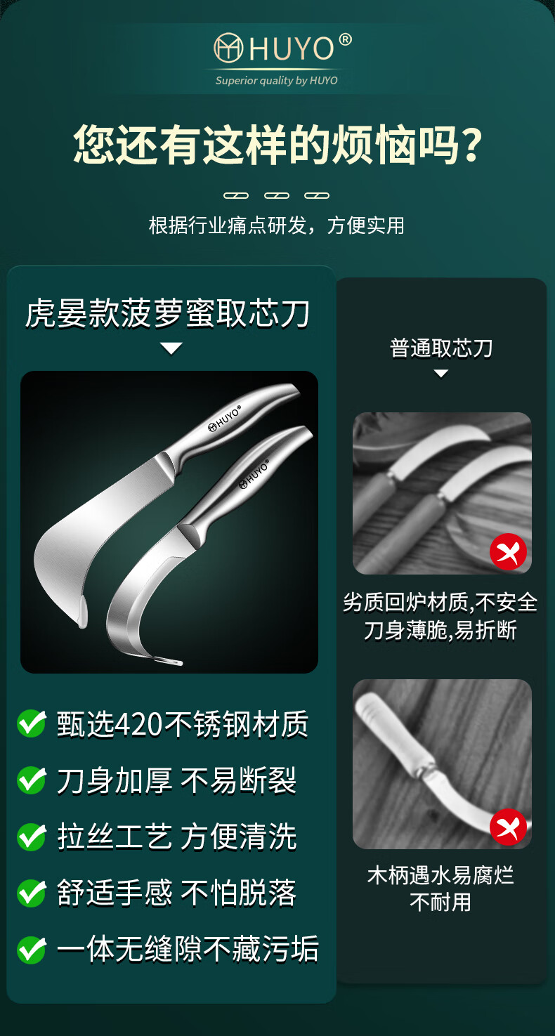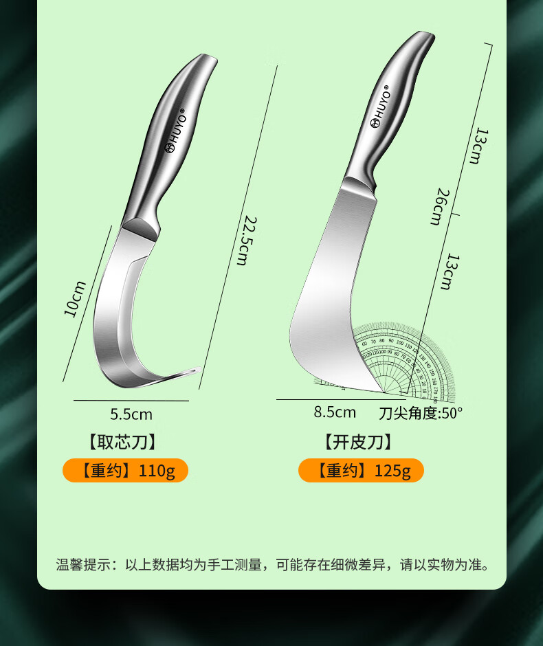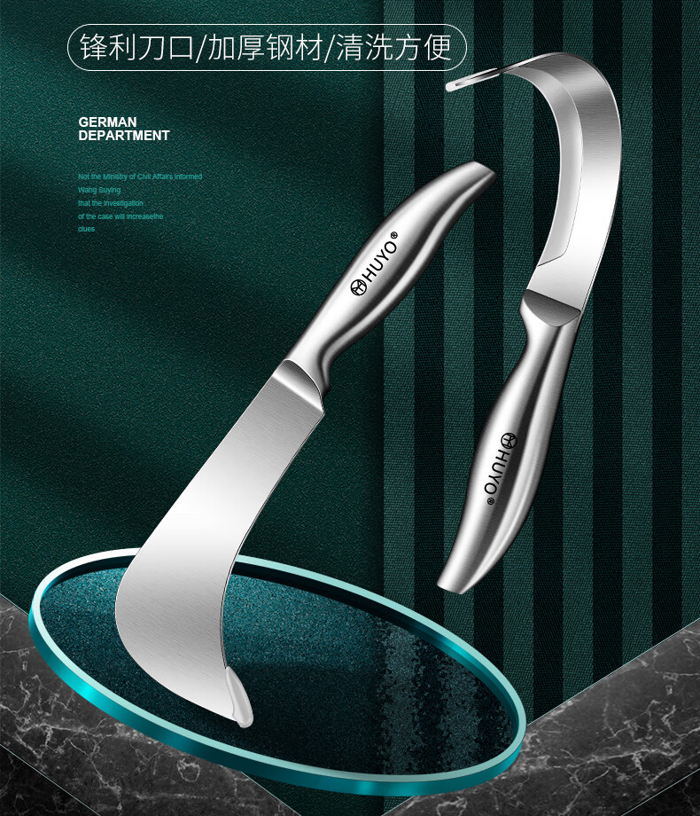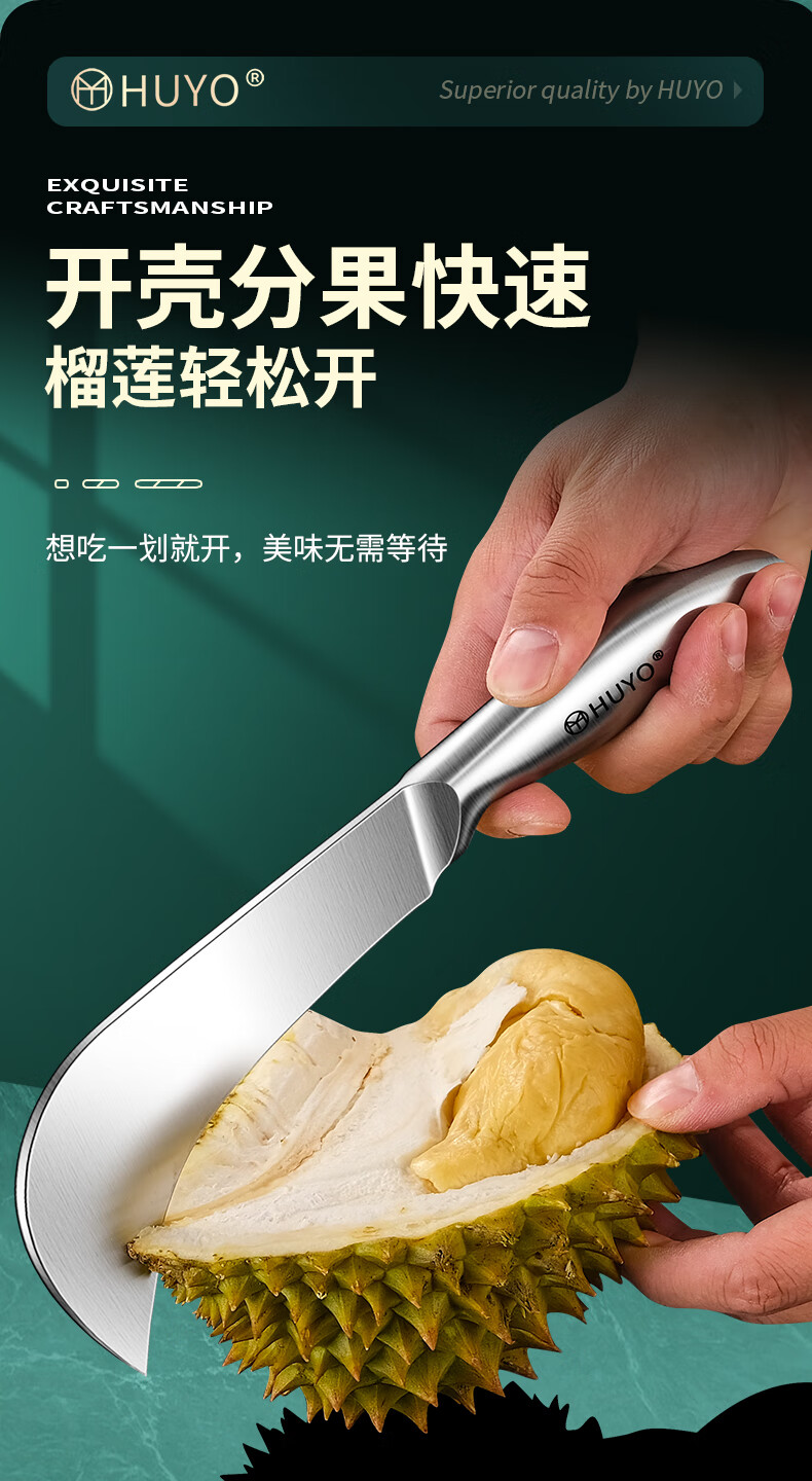 HUYO Stainless Steel Jackfruit Special Knife Commercial Fruit Scimitar Shell Opening and Meat Removal Tool Durian Jackfruit Coring Artifact Curved Coring Knife Special for Jackfruit