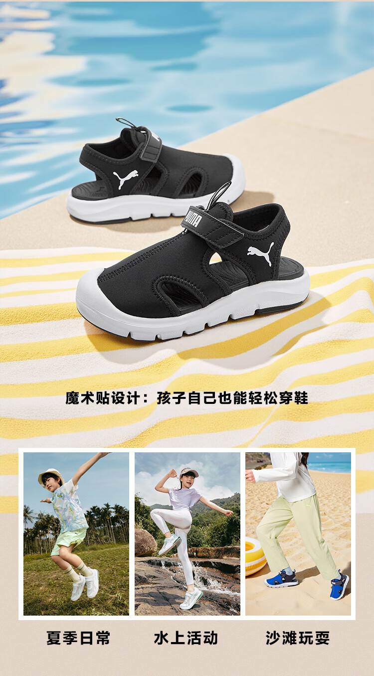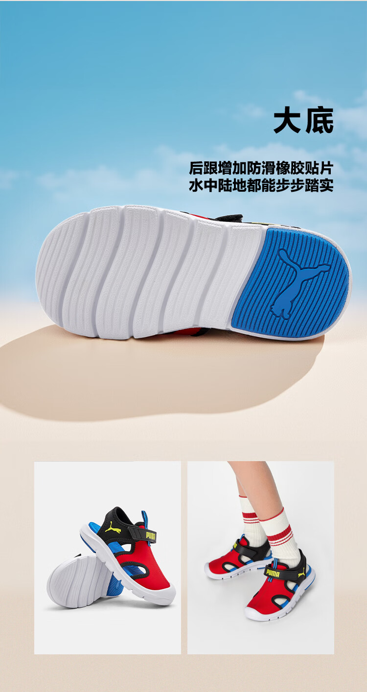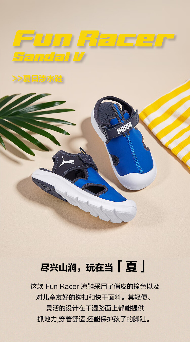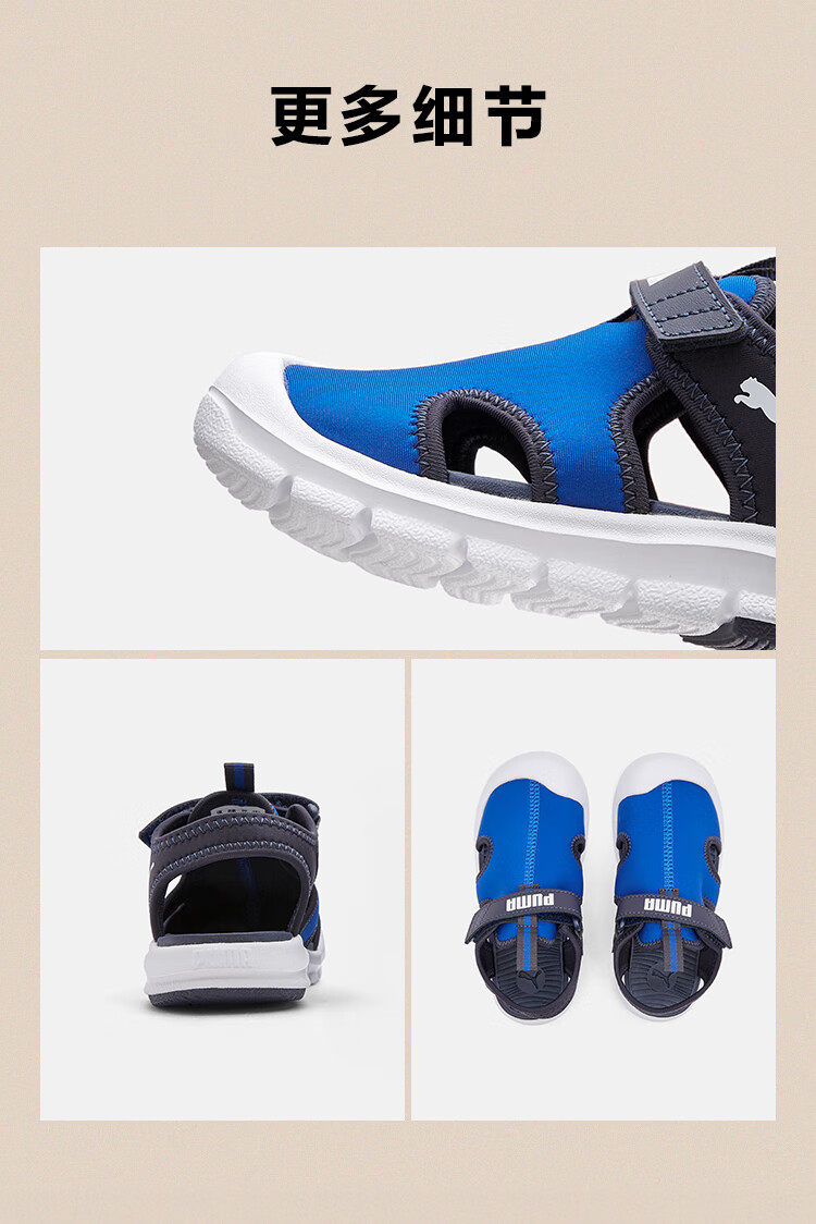 Puma official authentic new children's and middle-aged slip-on sneakers breathable mesh sandals beach shoes blue-Puma white-navy 28