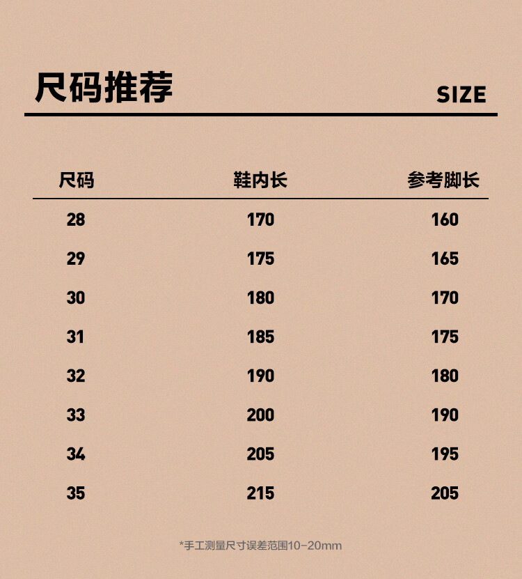 China (cm) 36 - 37 38 - 39 40 - 42 43 - 44 45 - 47