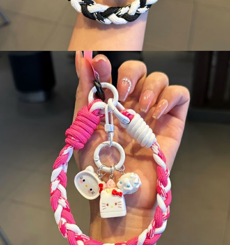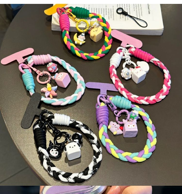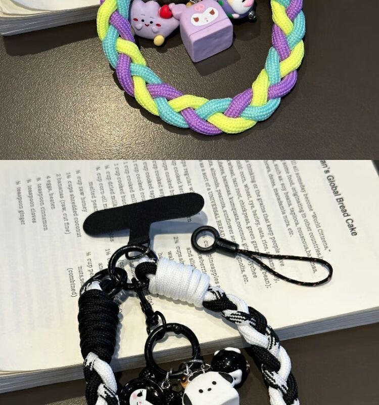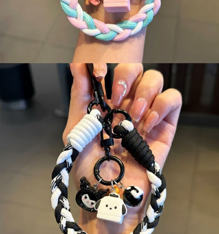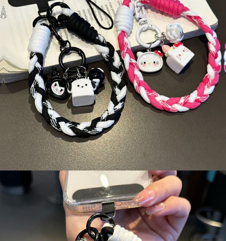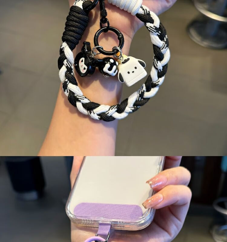 Youmipa cute ins mobile phone lanyard short hand-held woven wrist pendant durable cartoon hanging chain strong mobile phone chain black kulomi + woven bracelet black and white grid black card strip small black rope