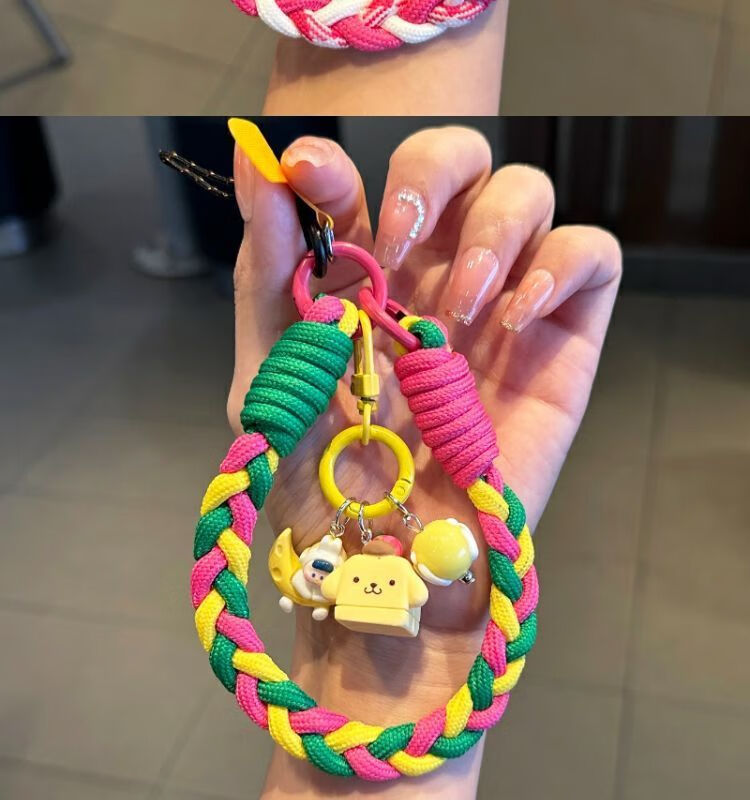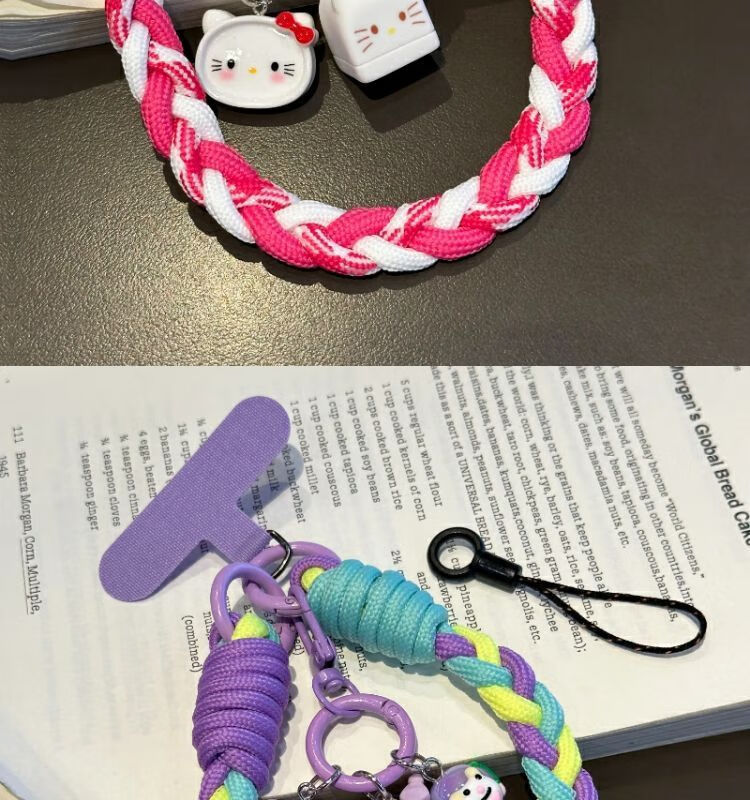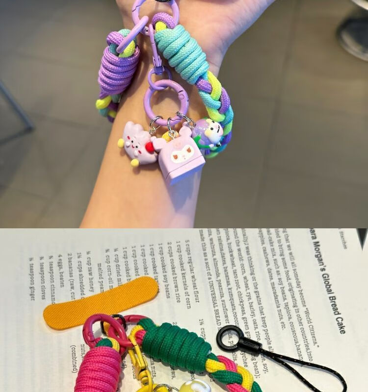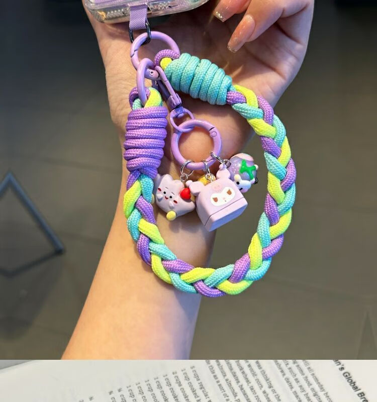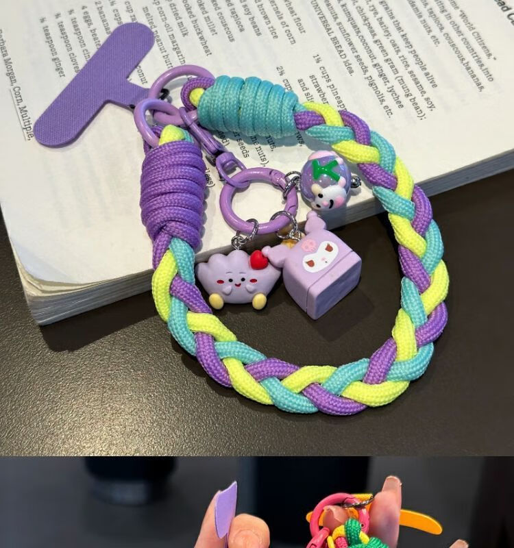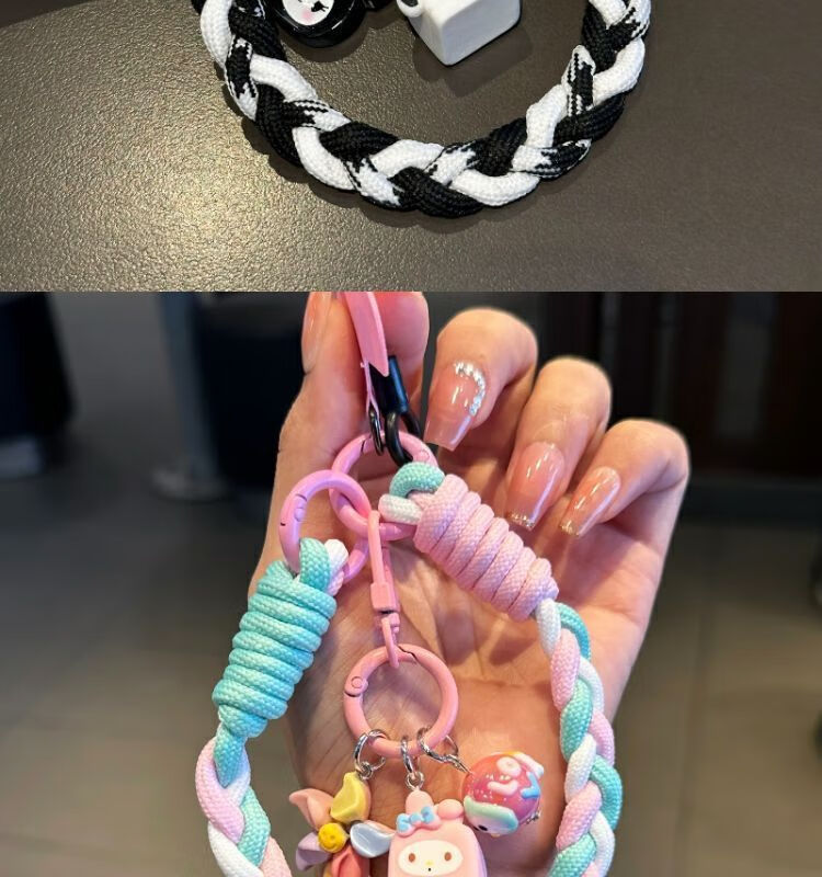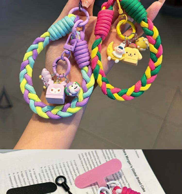 Youmipa cute ins mobile phone lanyard short hand-held woven wrist pendant durable cartoon hanging chain strong mobile phone chain black kulomi + woven bracelet black and white grid black card strip small black rope