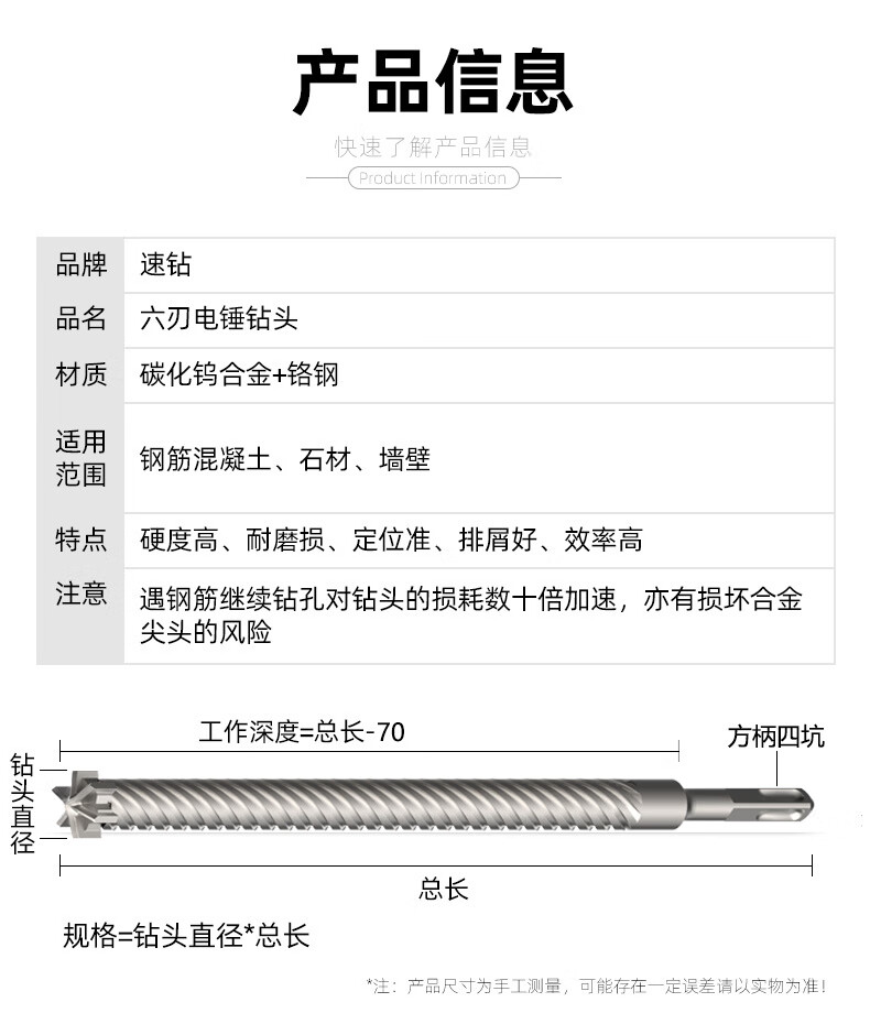 An Junsheng six-edged electric hammer drill bit for reinforced concrete construction bridge rebar drilling and extending through the wall square handle four-pit impact drill square handle six-edged 18*200