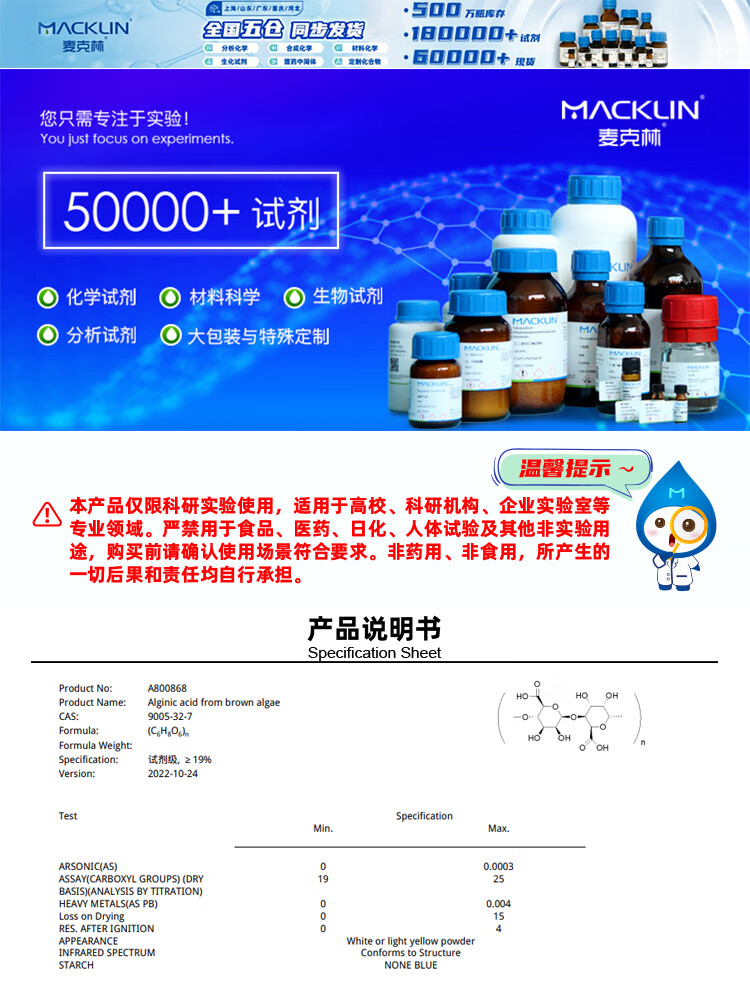 Macklin alginic acid comes from brown algae CAS 9005-32-7 A800868-100g