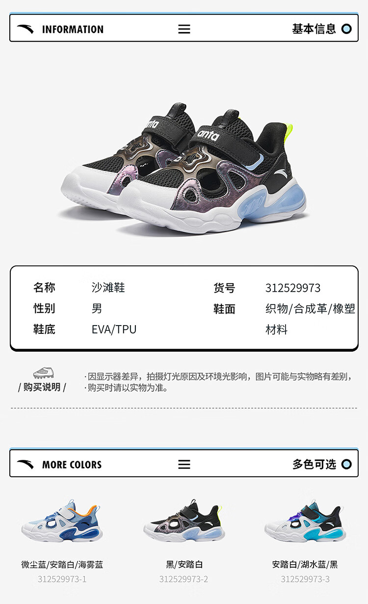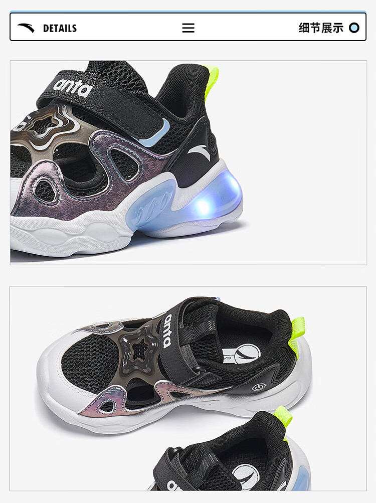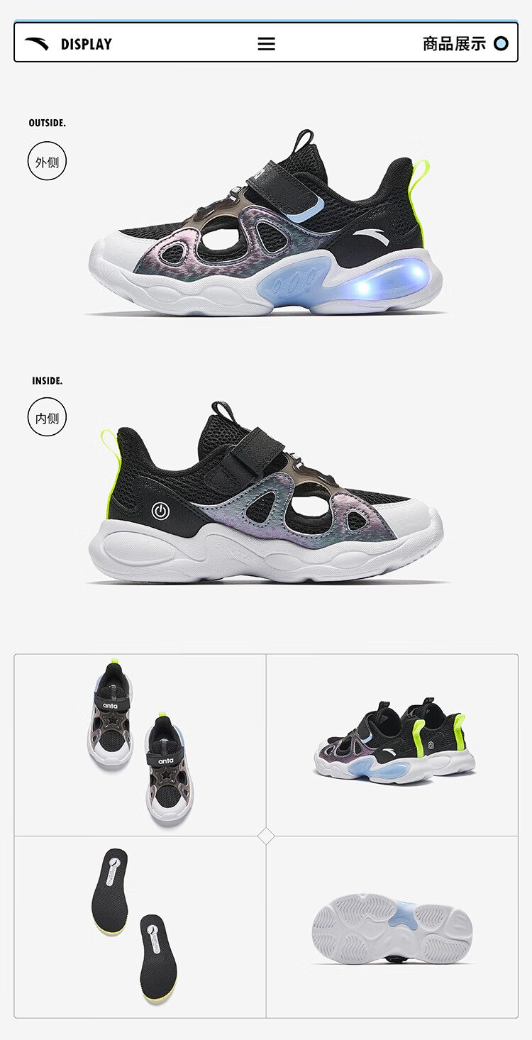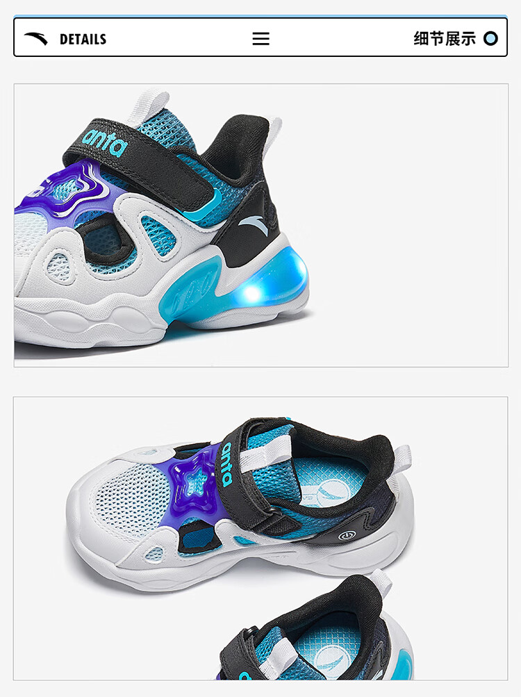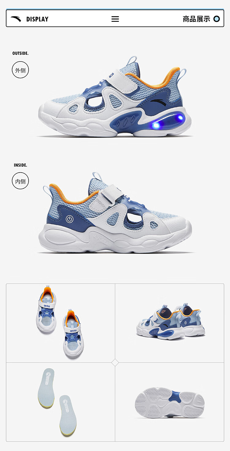 ANTA Children's Sandals Boys' Shoes 2025 Summer New Product Wing Flash Flash Light Outdoor Frame Shoes Beach Shoes Dust Blue/Anta White/Sea Mist Blue-1 32 Shoe Inner Length 20cm