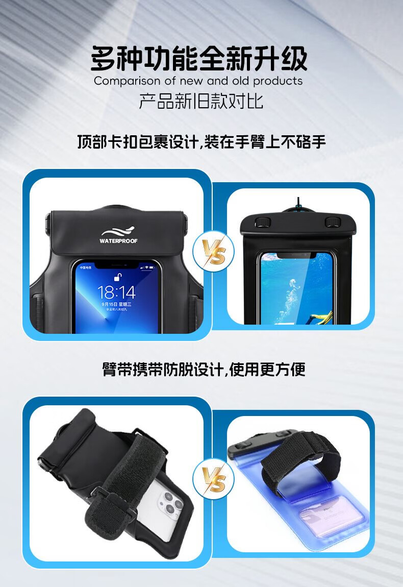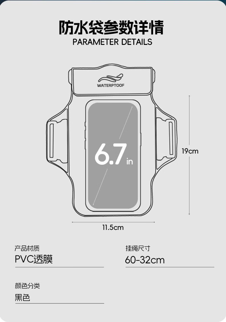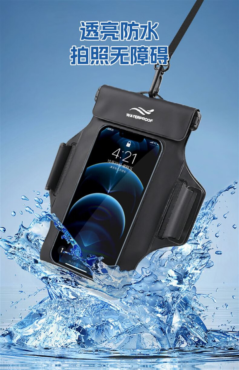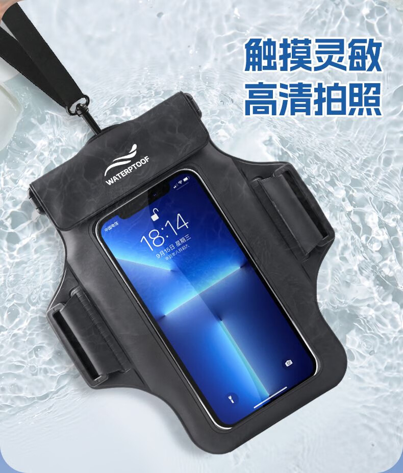 Japanese mobile phone waterproof bag with touch screen swimming rafting hot spring takeaway hanging neck arm bag waterproof mobile phone case black