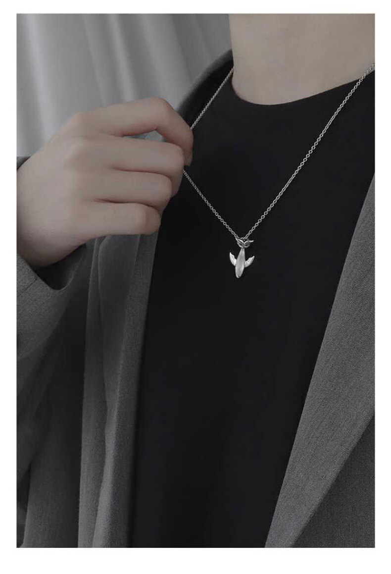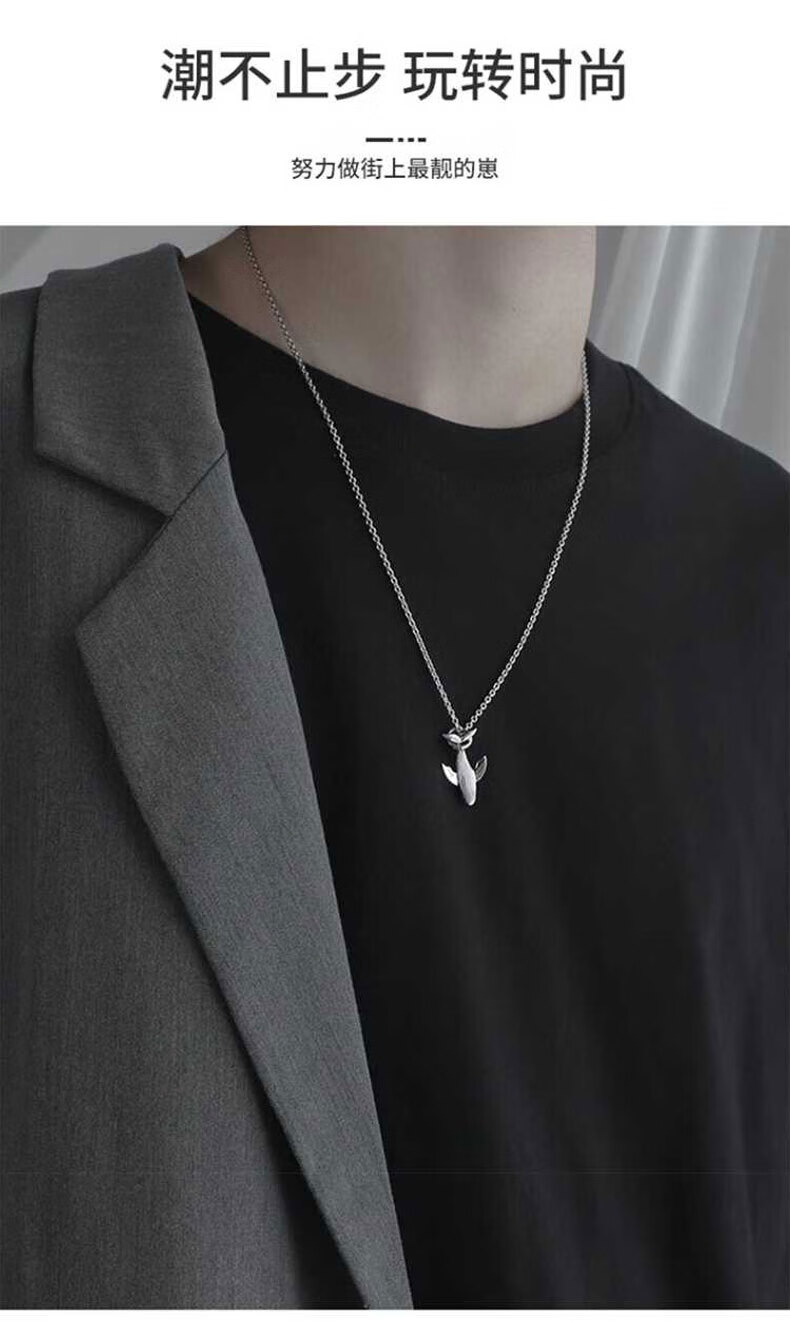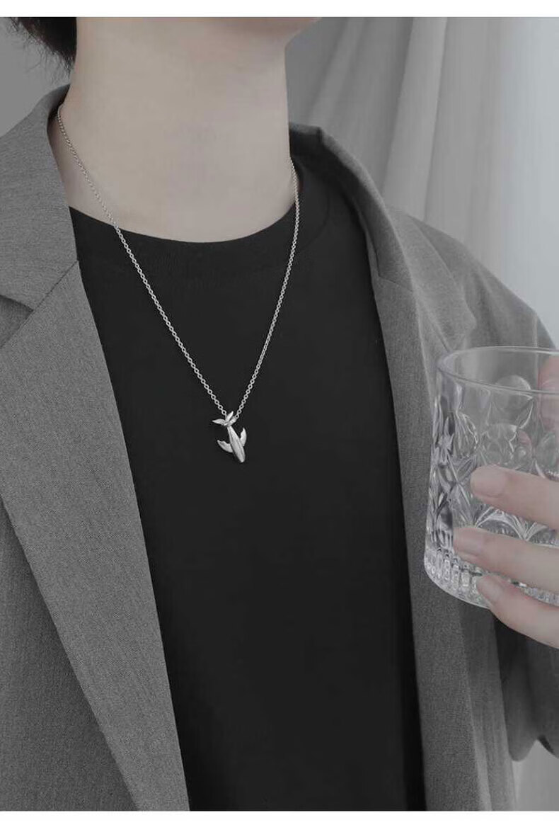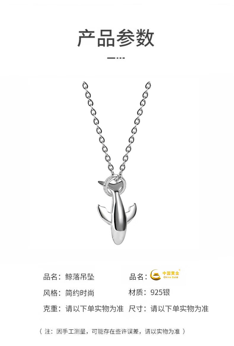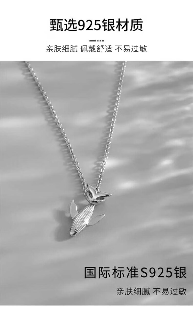 China Gold S925 Silver Whale Fall Necklace for Men Simple Trendy Pendant Practical Birthday Gift for Boyfriend Classic Red Gift Box
