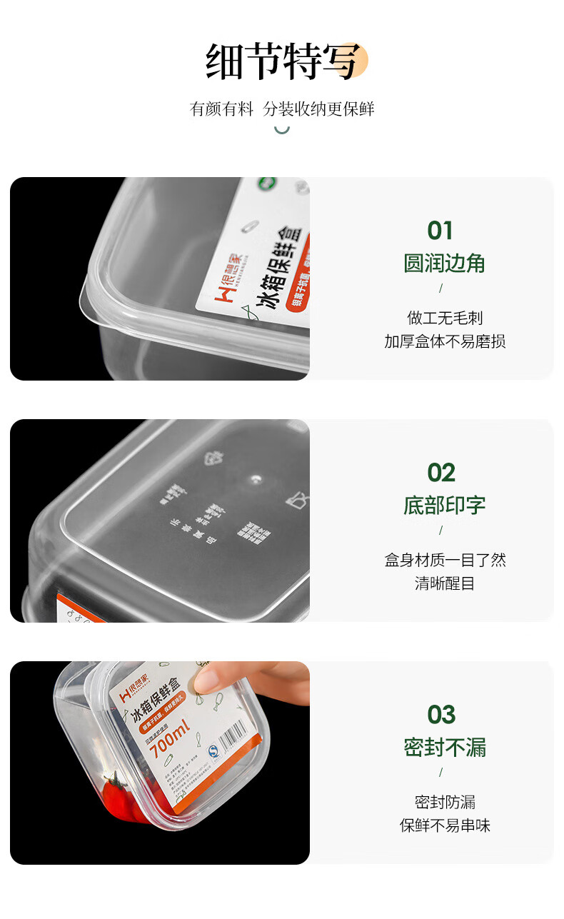 Travel accessories food-grade refrigerator special commercial sample box plastic square sealed storage box with lid square small 550ML 1 pack