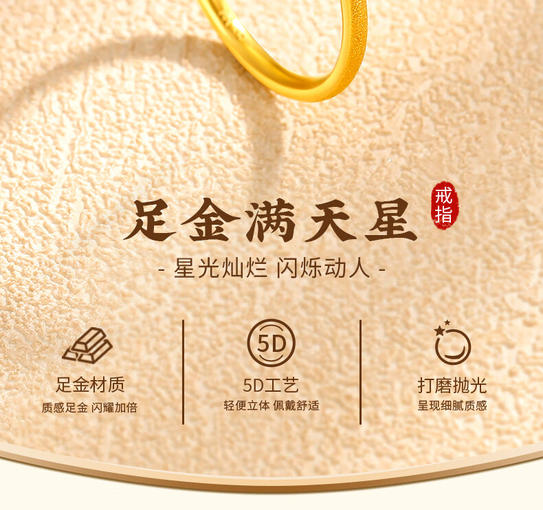 CHINA GOLD plain gold ring for women, pure gold baby's breath ring for men and women, birthday gift for boyfriend and husband 12# pure gold baby's breath star ring, about 0.5g