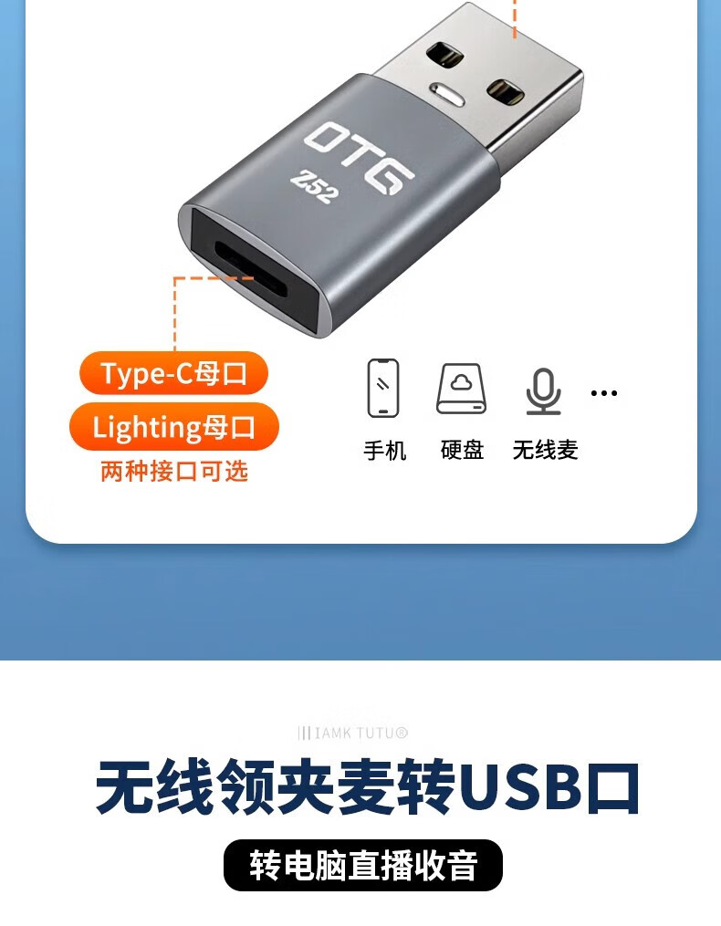 CASSDAN is suitable for Boya Mammoth S1A1 wireless lavalier microphone Apple lightning female port to USB interface to connect laptop desktop host adapter OTG data suitable for Apple lightning female port to USB converter