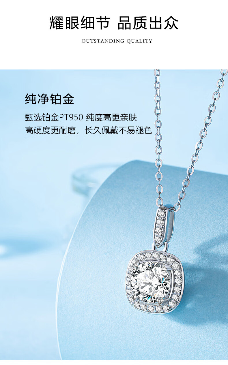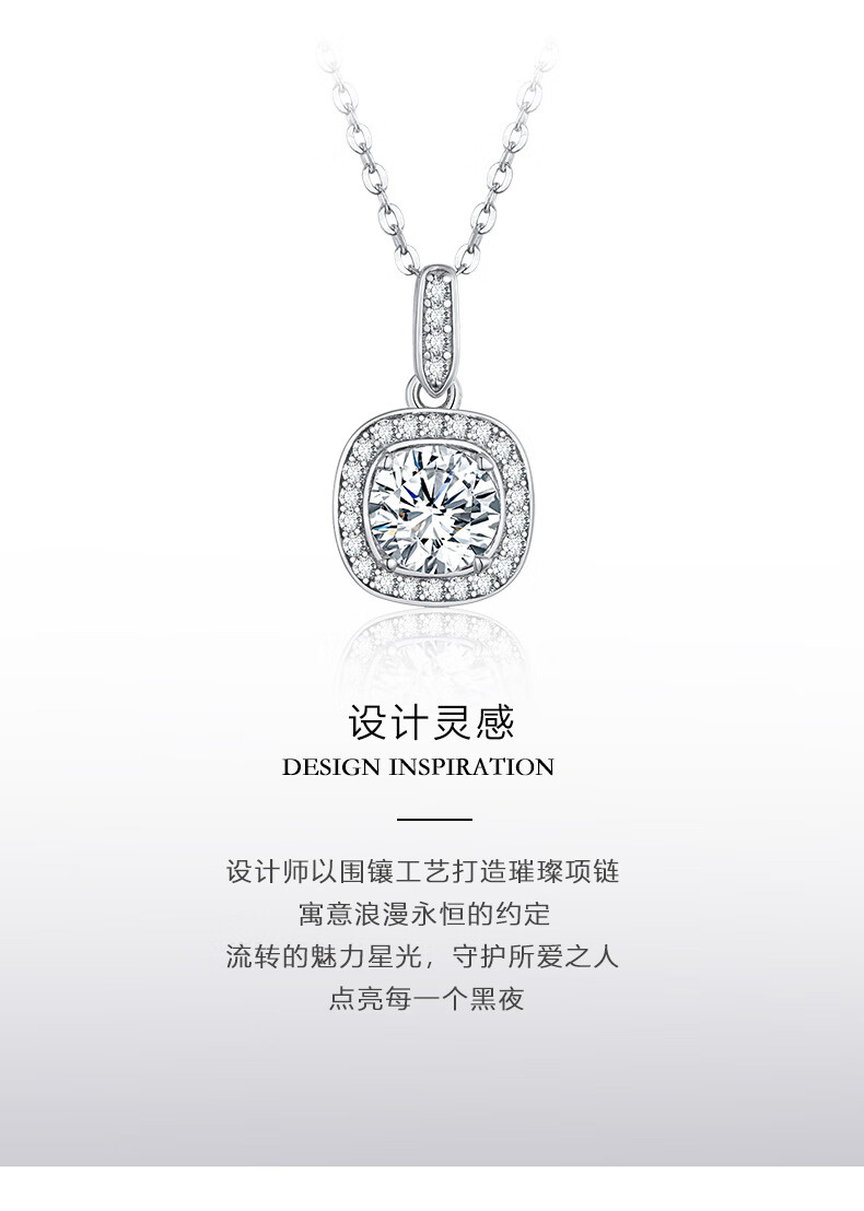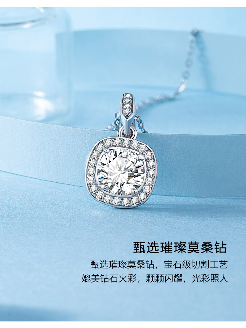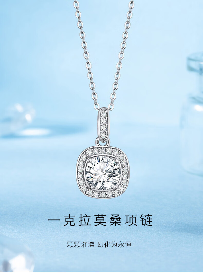 Grace Girl Platinum Necklace Women's One Carat Moissanite Diamond Sugar Cube Pendant Light Luxury High-Quality Heart-warming Gift for Girlfriend on Valentine's Day Platinum Moissanite Diamond Necklace + Light Luxury Gift Box