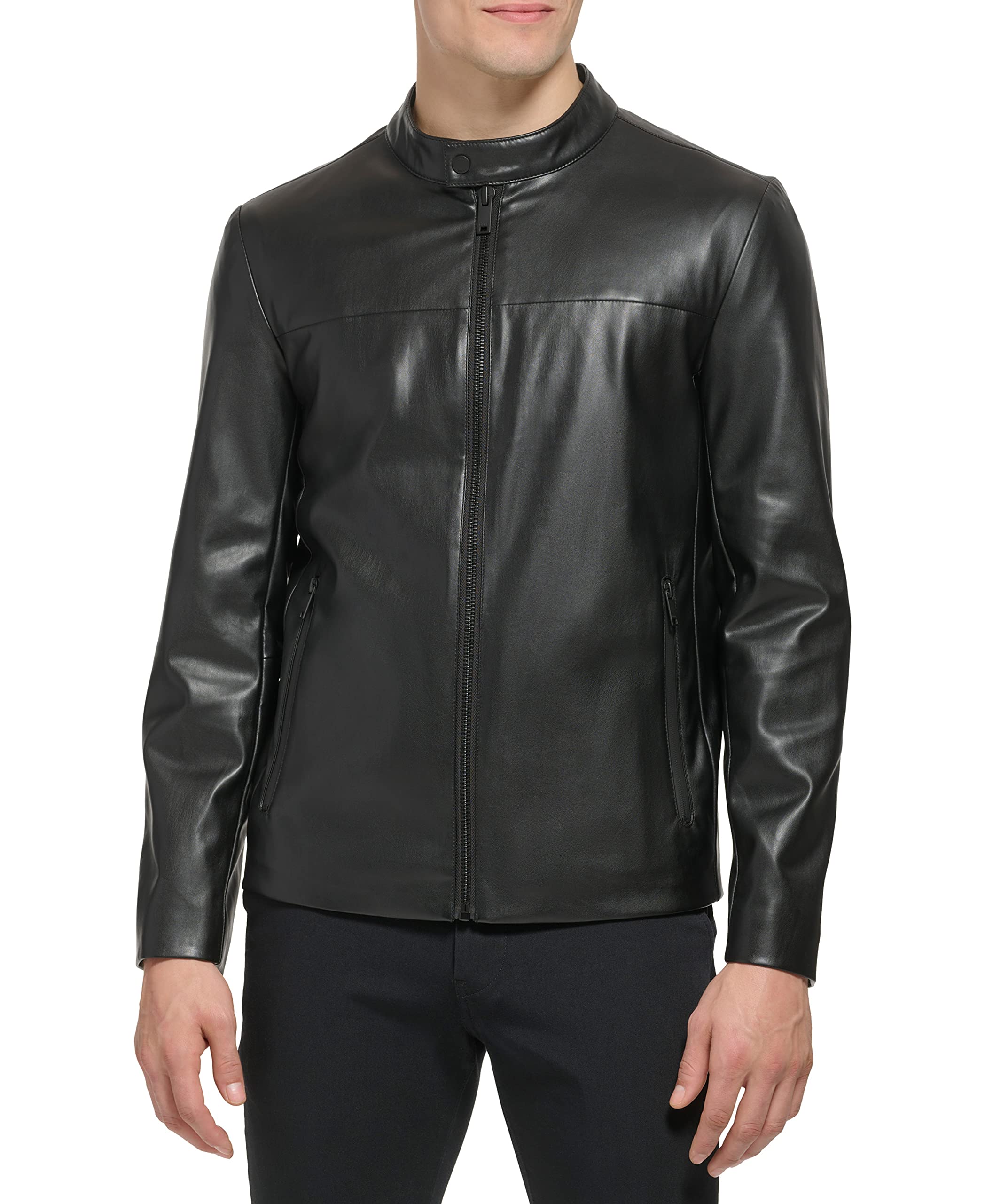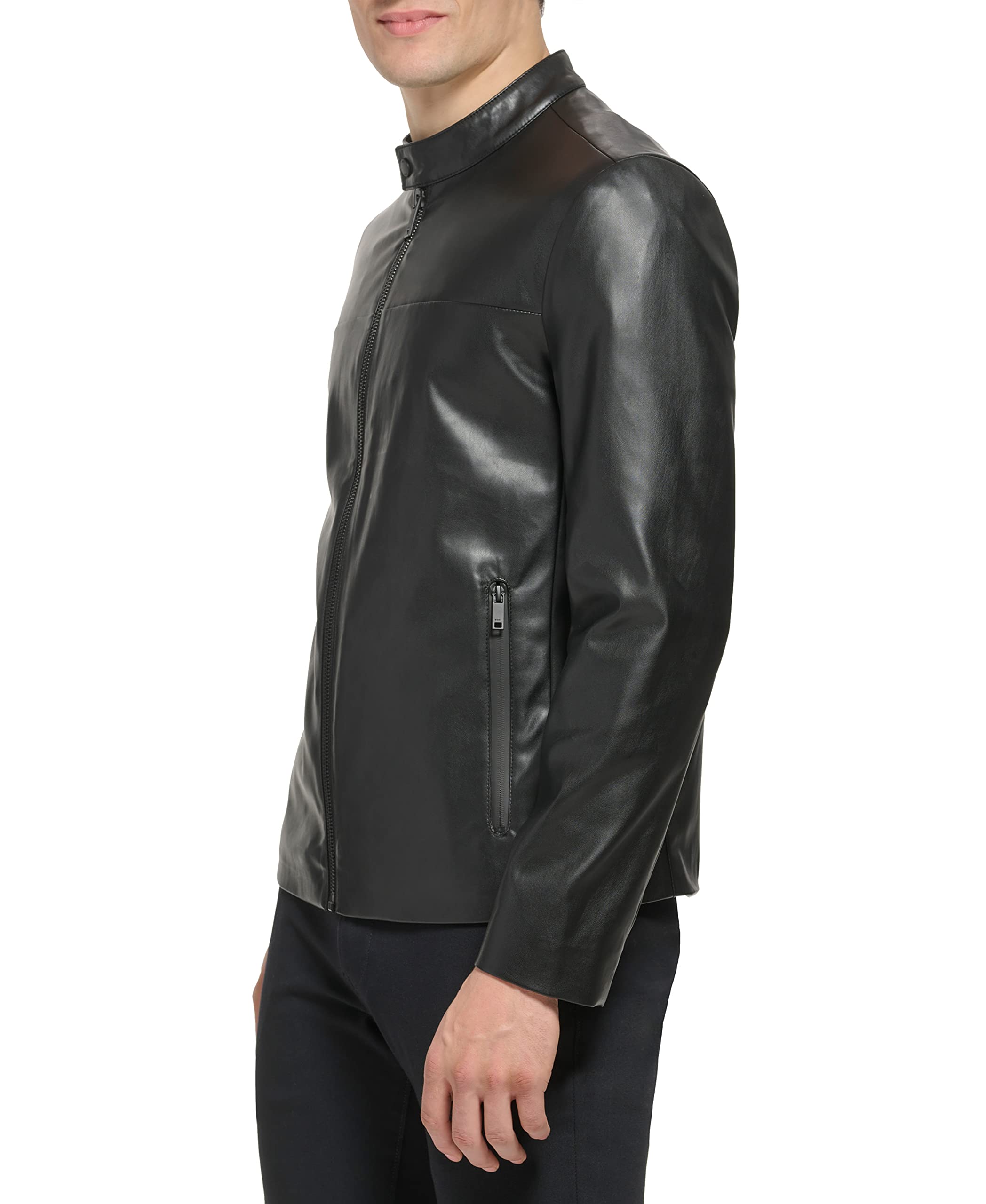 DKNY Men's Faux Laether Modern Racing Jacket Black Smooth Lamb XX-Large