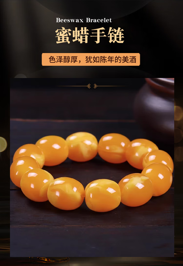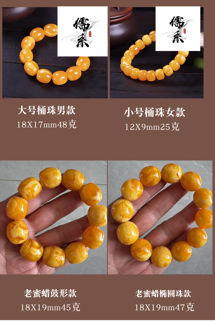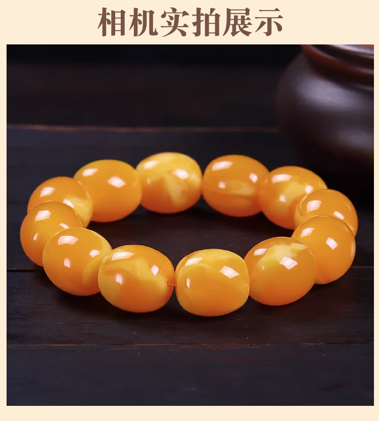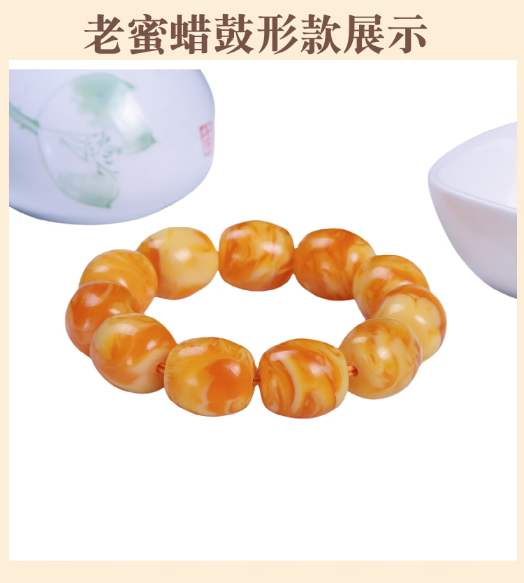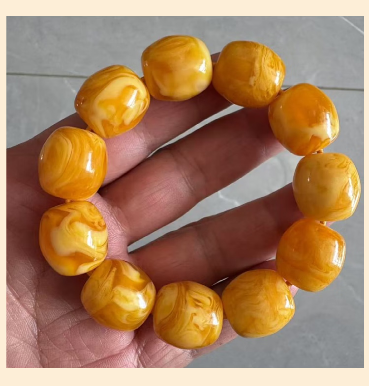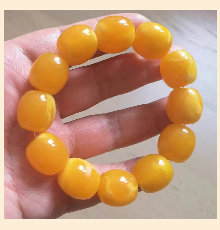 Confucian Baltic Chicken Fat Yellow Old Beeswax Bracelet Old Type Barrel Beads Drum Beads Oval Cylindrical Yellow Amber Bracelet Old Beeswax Oval Style 18x19mm