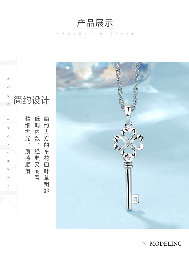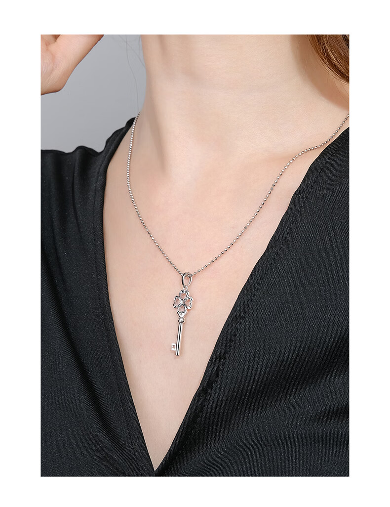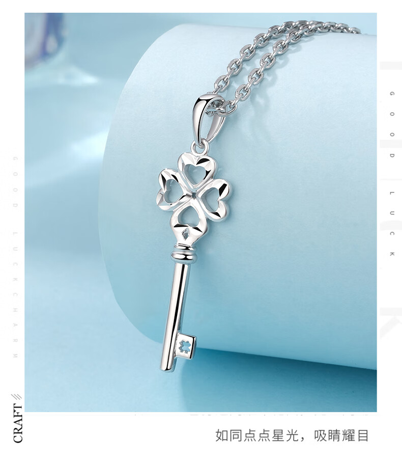 Centennial Baojinxiang pt950 platinum pendant for women, platinum necklace, four-leaf clover key pendant, clavicle pendant, girlfriend gift, about 4-4.2 grams, height and width 4-4.2 cm