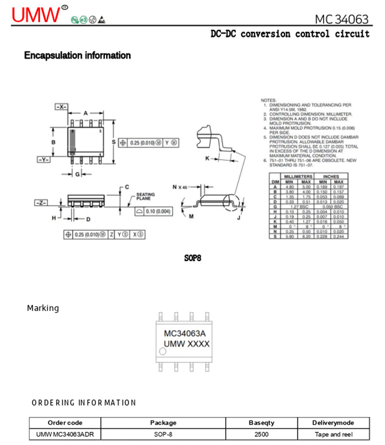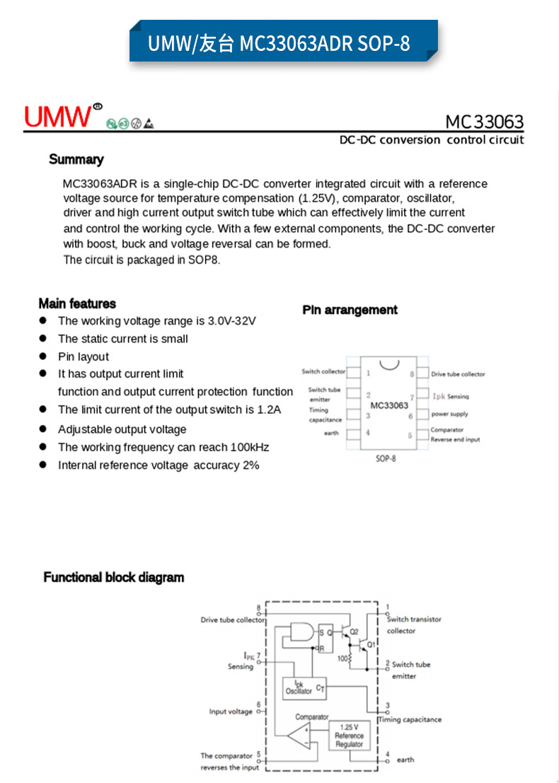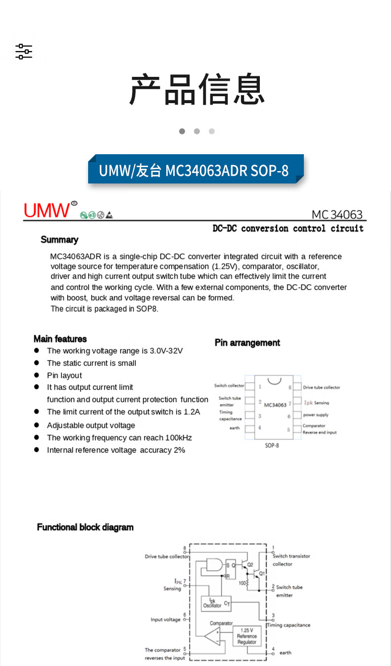 Original genuine UMW MC34063ADR MC33063ADR SOP-8 DC-DC power chip UMW/Friend Taiwan MC34063ADRSOP-8 (5 pieces)