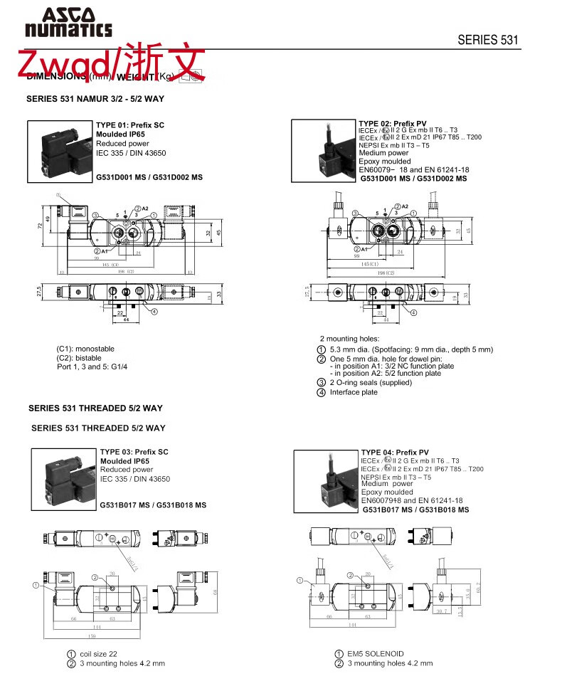Solenoid valve SCG531C001MS ASCO reversing valve plate type veneer installation G531C001M AC220V