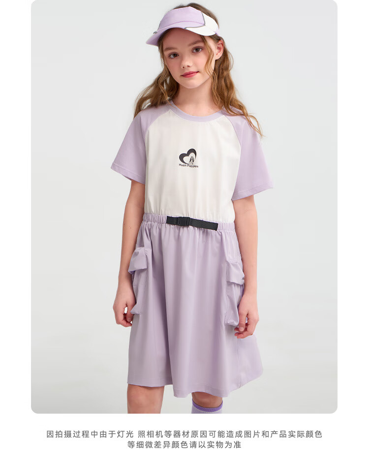 Hush Puppies children's clothing for children, girls and older children, summer energetic, youthful, fashionable, playful workwear style casual dress, ice blue purple 120