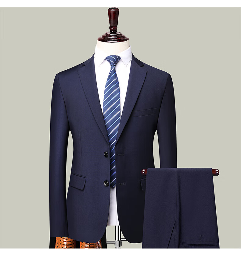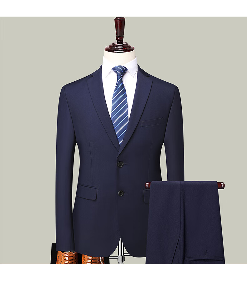 ROMON Men's Men's Suit Slim Jacket Small Suit Business Formal Wear Student Work Interview Professional Wear New Product Navy Two Button Suit+Trousers XS 160/80A 80-95Jin Jin equals 0.5 kg