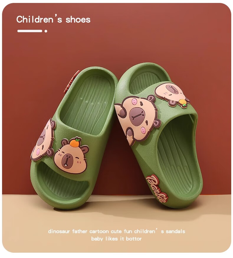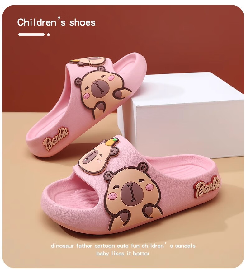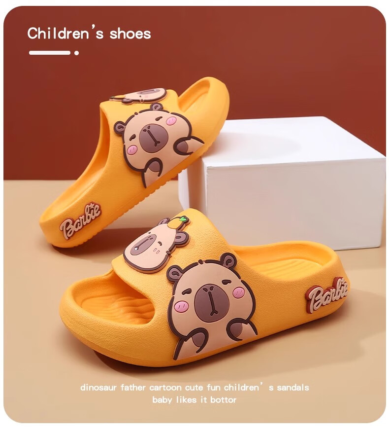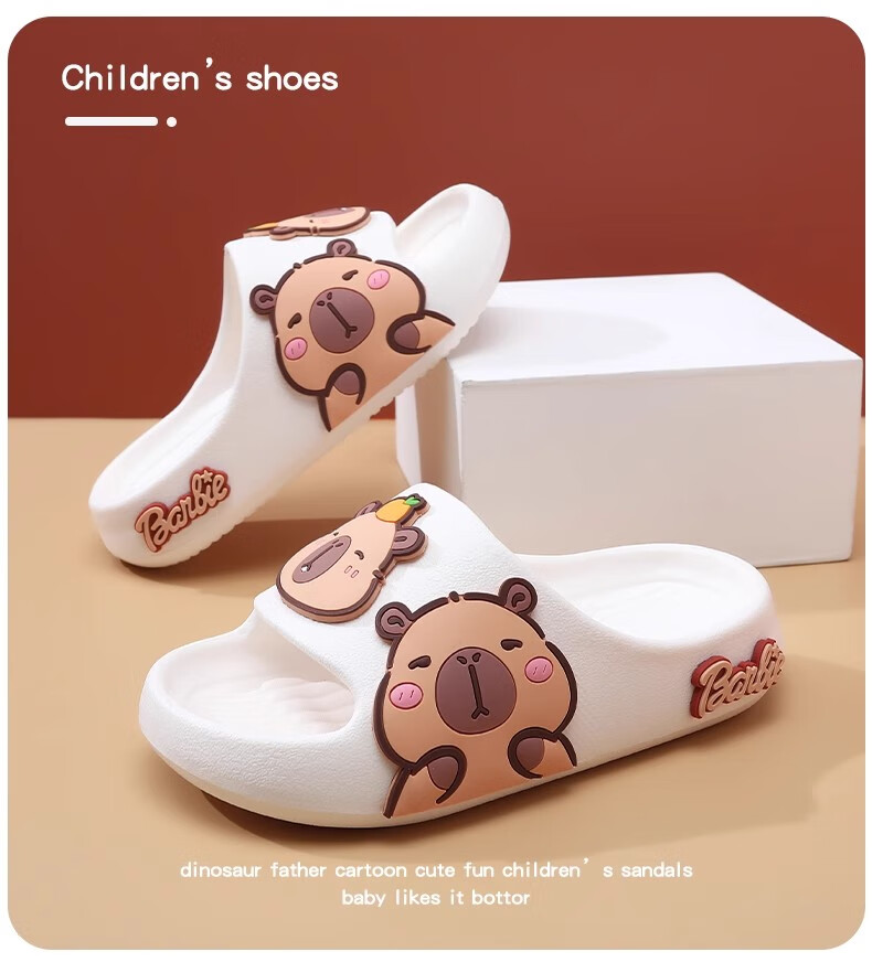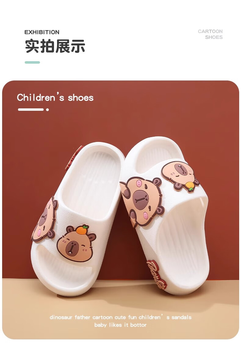 Hunter Kapibara children's summer slippers for boys indoor bathing non-slip cartoon soft bottom deodorant girls home slippers off-white single layer 30.5 190mm (6-8 years old)