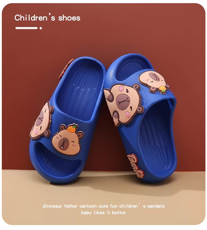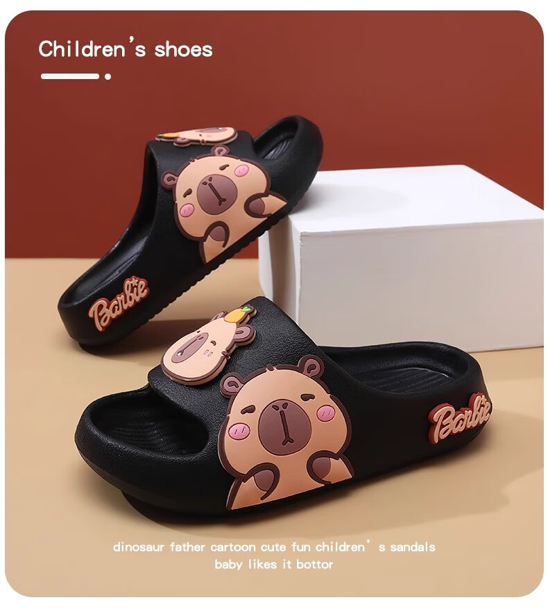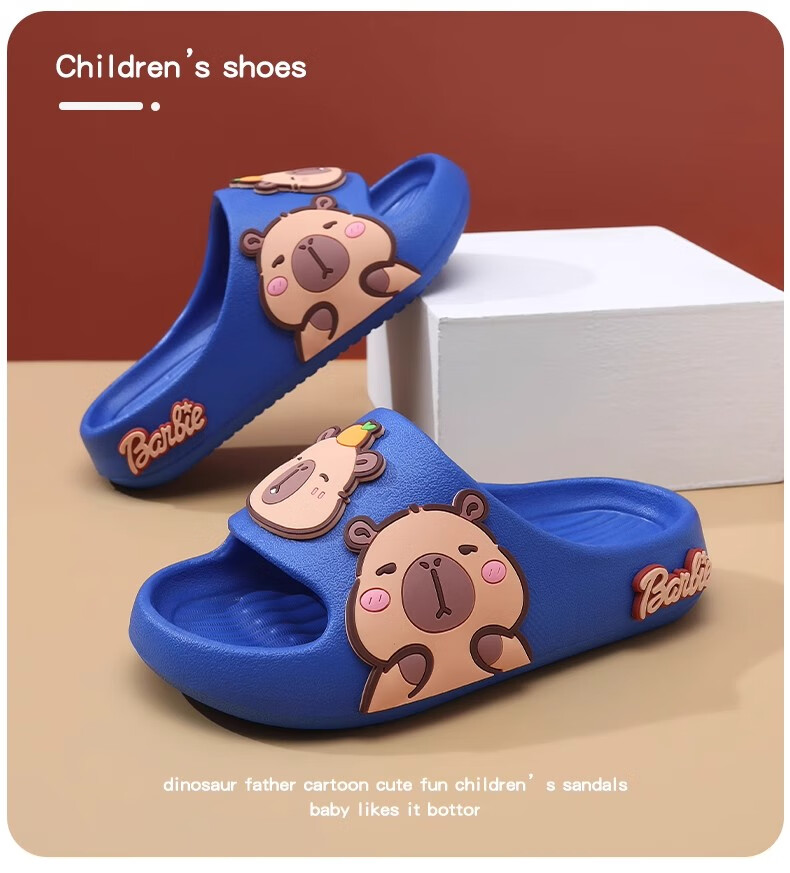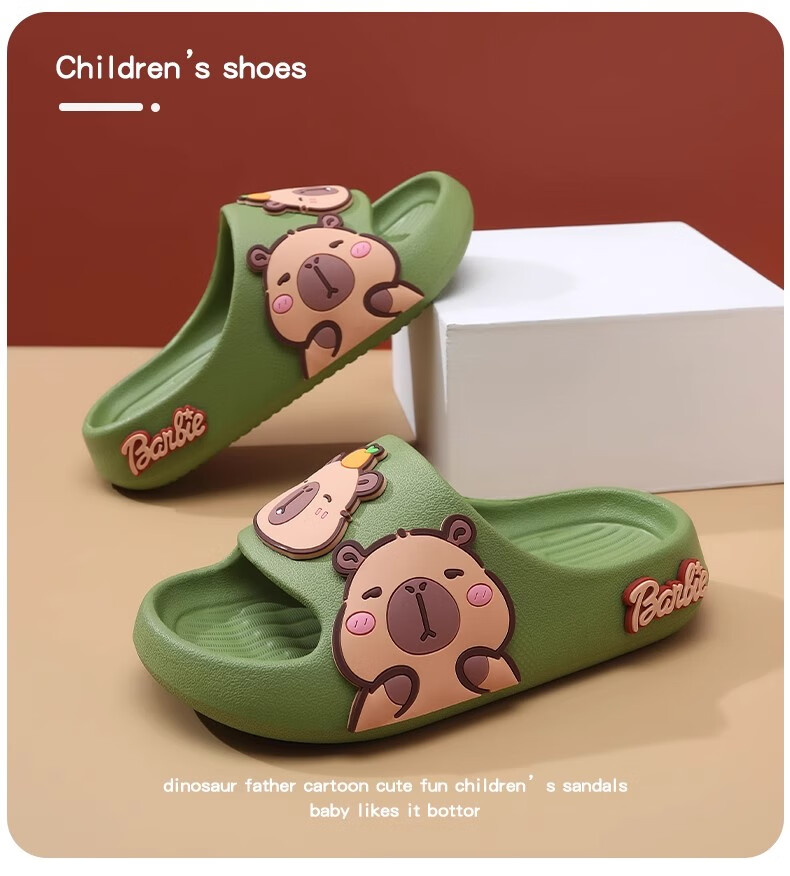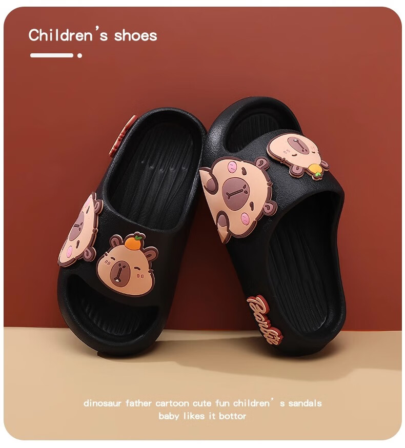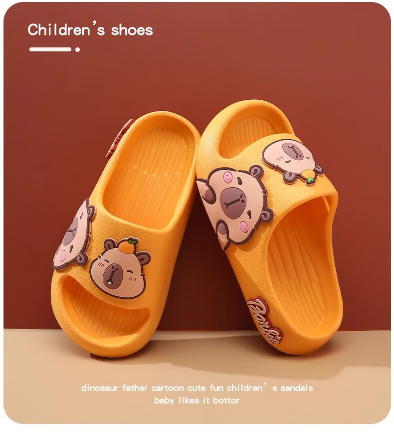 Hunter Kapibara children's summer slippers for boys indoor bathing non-slip cartoon soft bottom deodorant girls home slippers off-white single layer 30.5 190mm (6-8 years old)