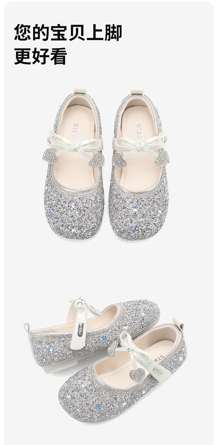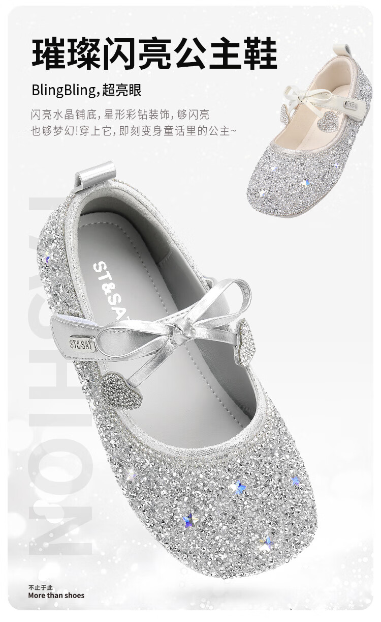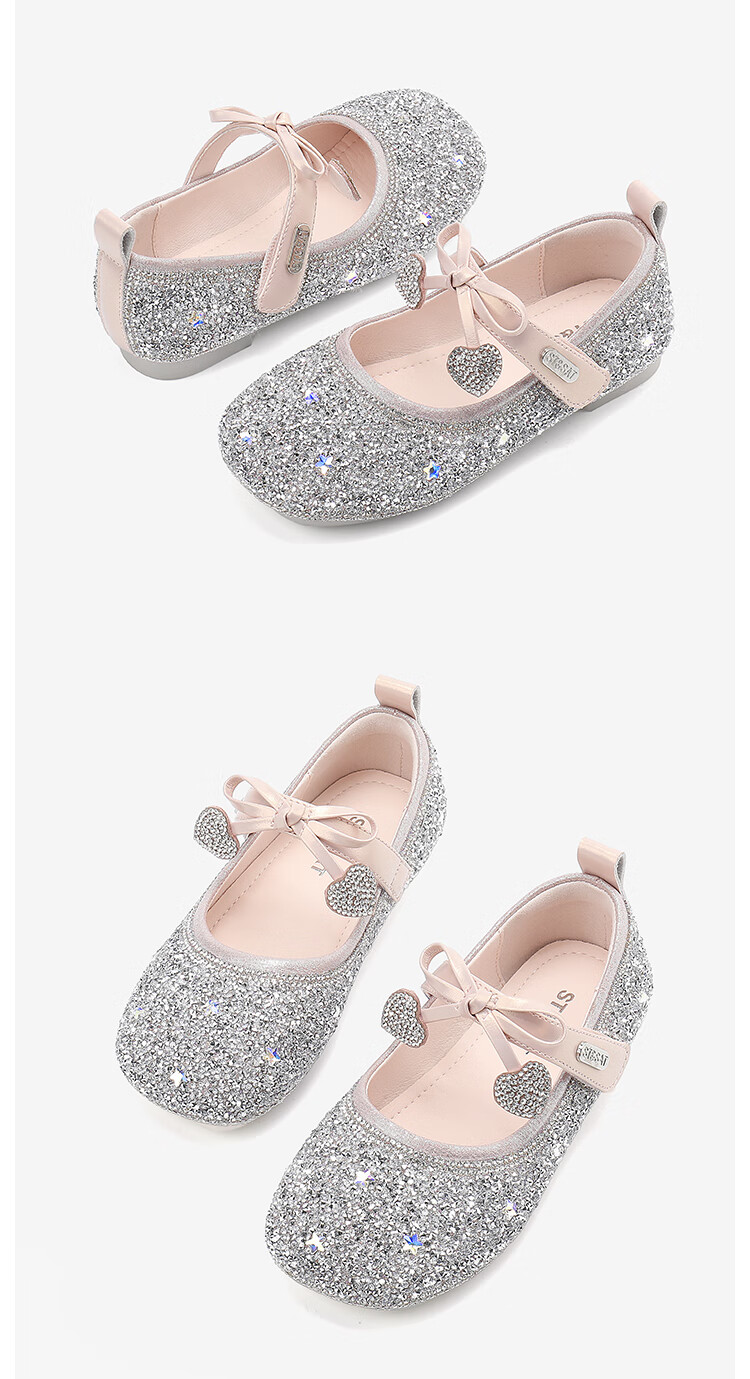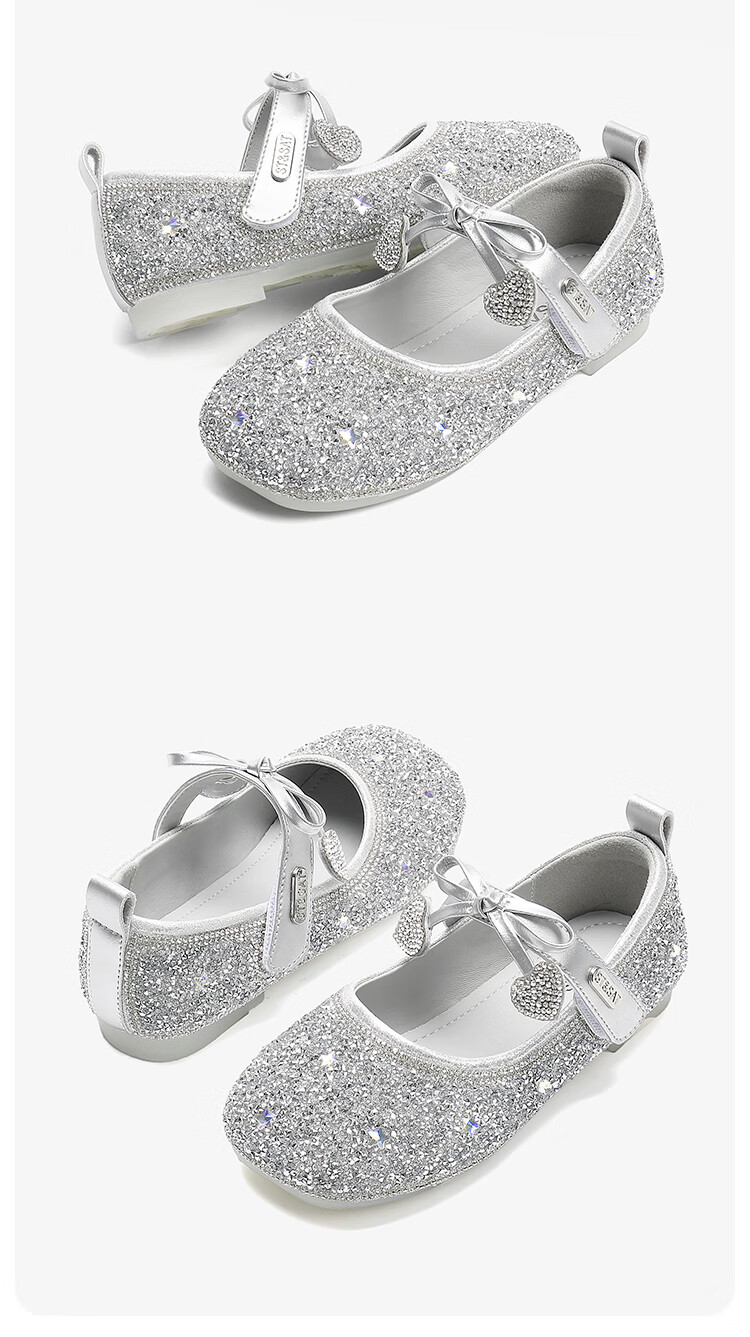 Saturday (St&Sat) Children's Shoes Girls Princess Shoes Spring and Autumn New Children's Crystal Shoes Small Leather Shoes Soft Soled Girls Shoes Baby Girls Shoes Glazed Silver 36 Inner Length Approximately 23.0cm