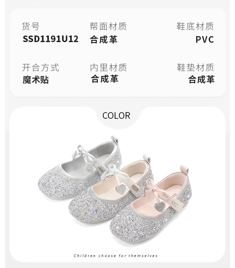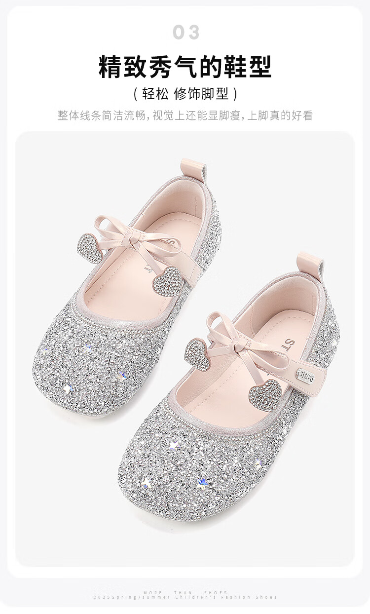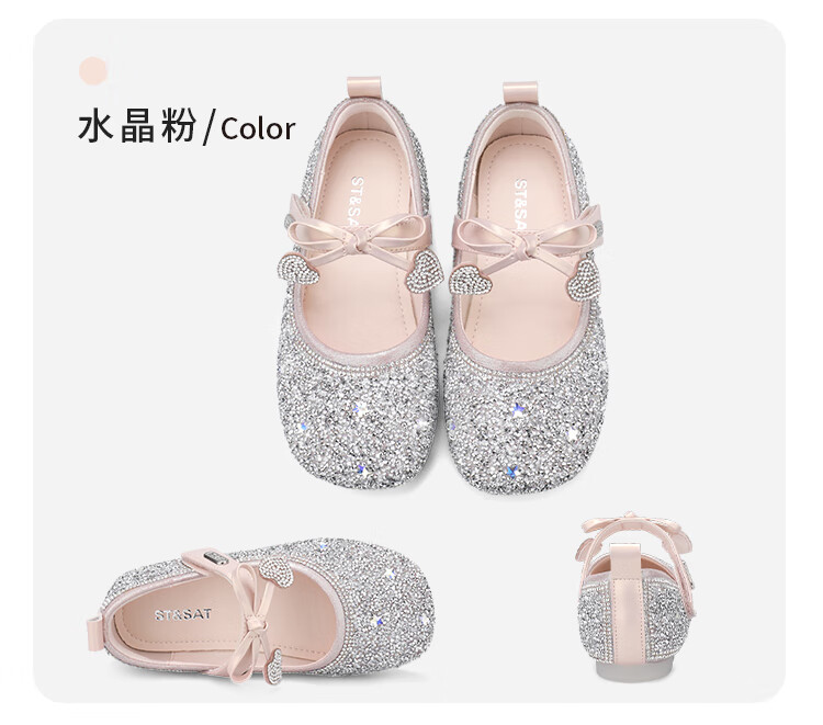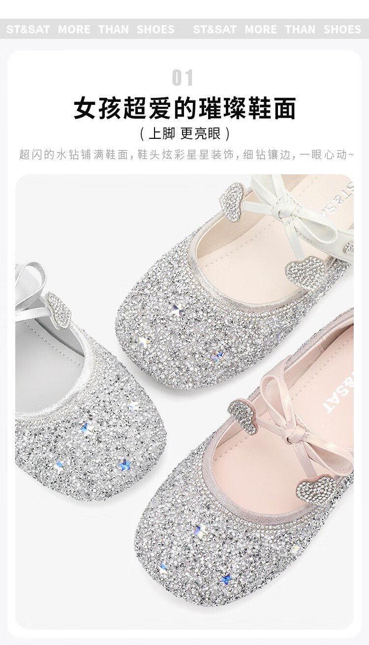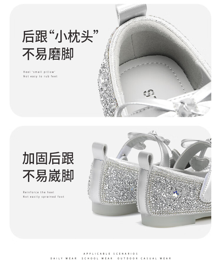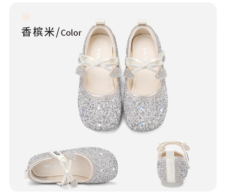 Saturday (St&Sat) Children's Shoes Girls Princess Shoes Spring and Autumn New Children's Crystal Shoes Small Leather Shoes Soft Soled Girls Shoes Baby Girls Shoes Glazed Silver 36 Inner Length Approximately 23.0cm
