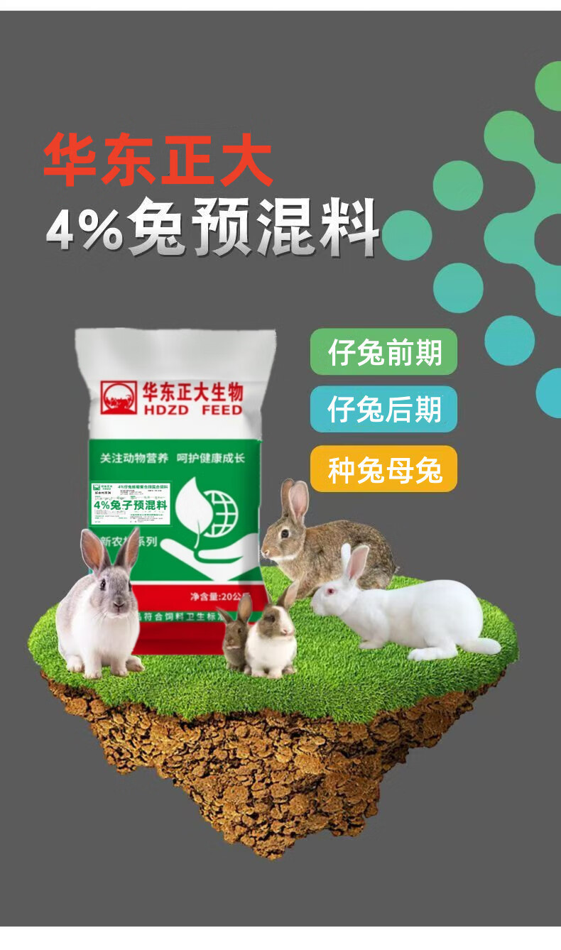 Zhengda Huadong Zhengda 4% Rabbit Premix Baby Rabbit Female Rabbit Feed grows meat quickly and is slaughtered early, with bright coat color and good intestinal tract. The early stage of the baby rabbit (starting to 50 days old)