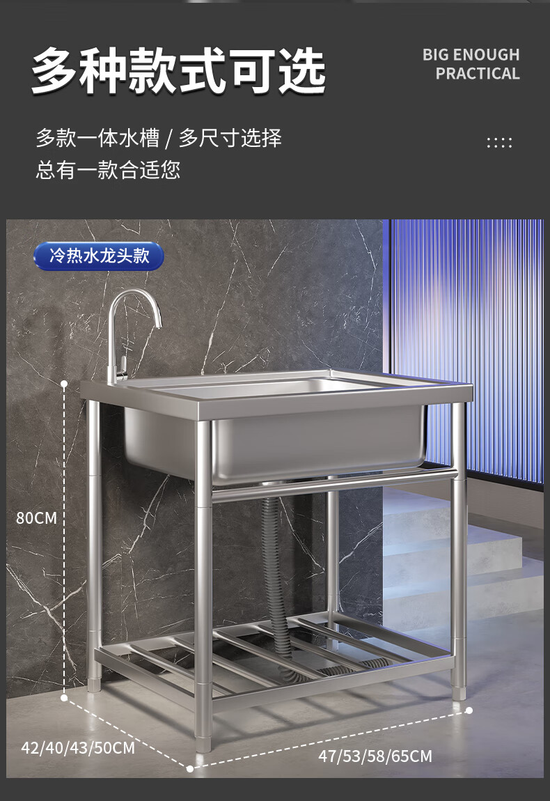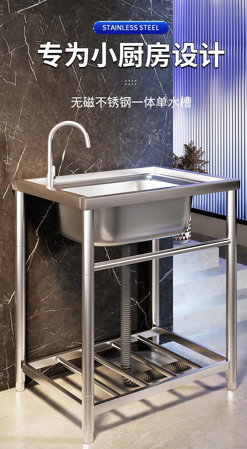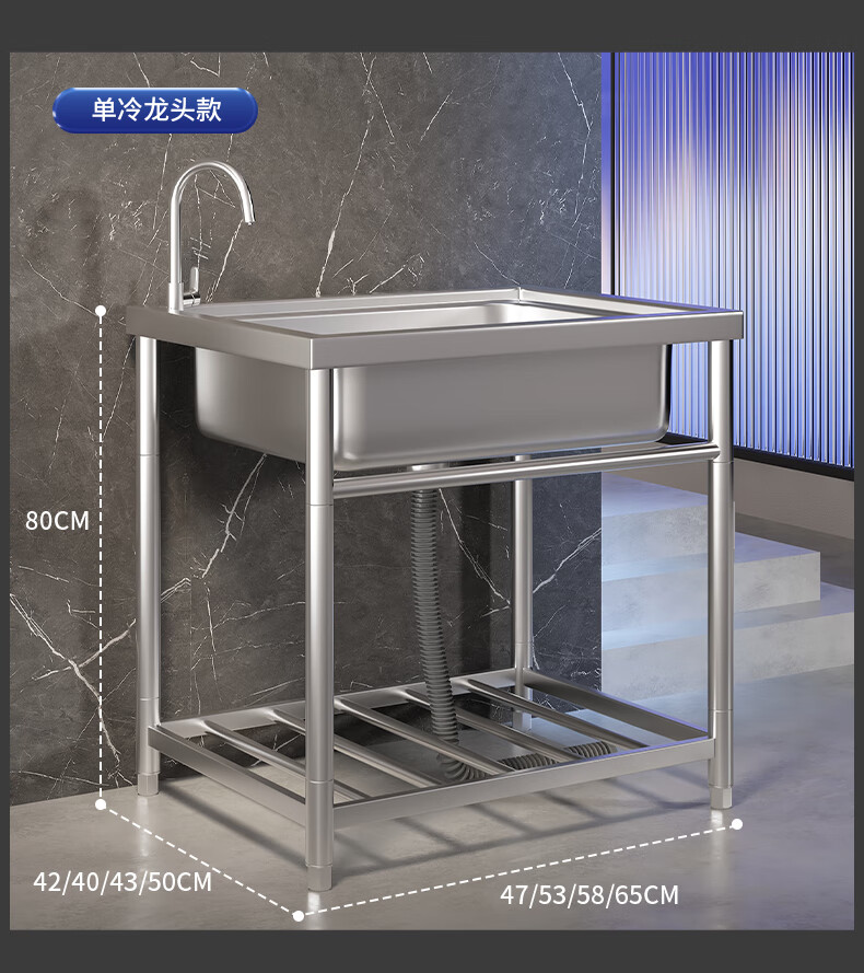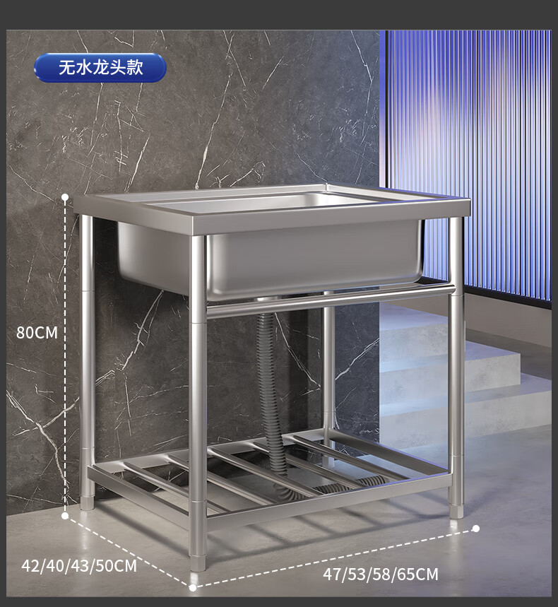 Xuan Ka Shi commercial kitchen sink 304 stainless steel wash basin with bracket integrated dishwasher household sink large single tank economical length 47 width 42 height 75 (no faucet)