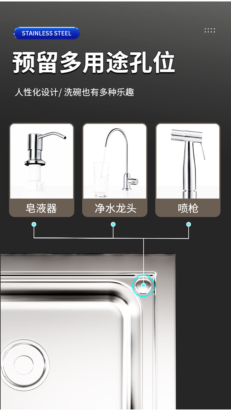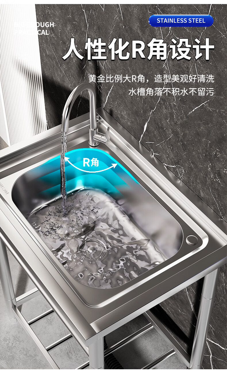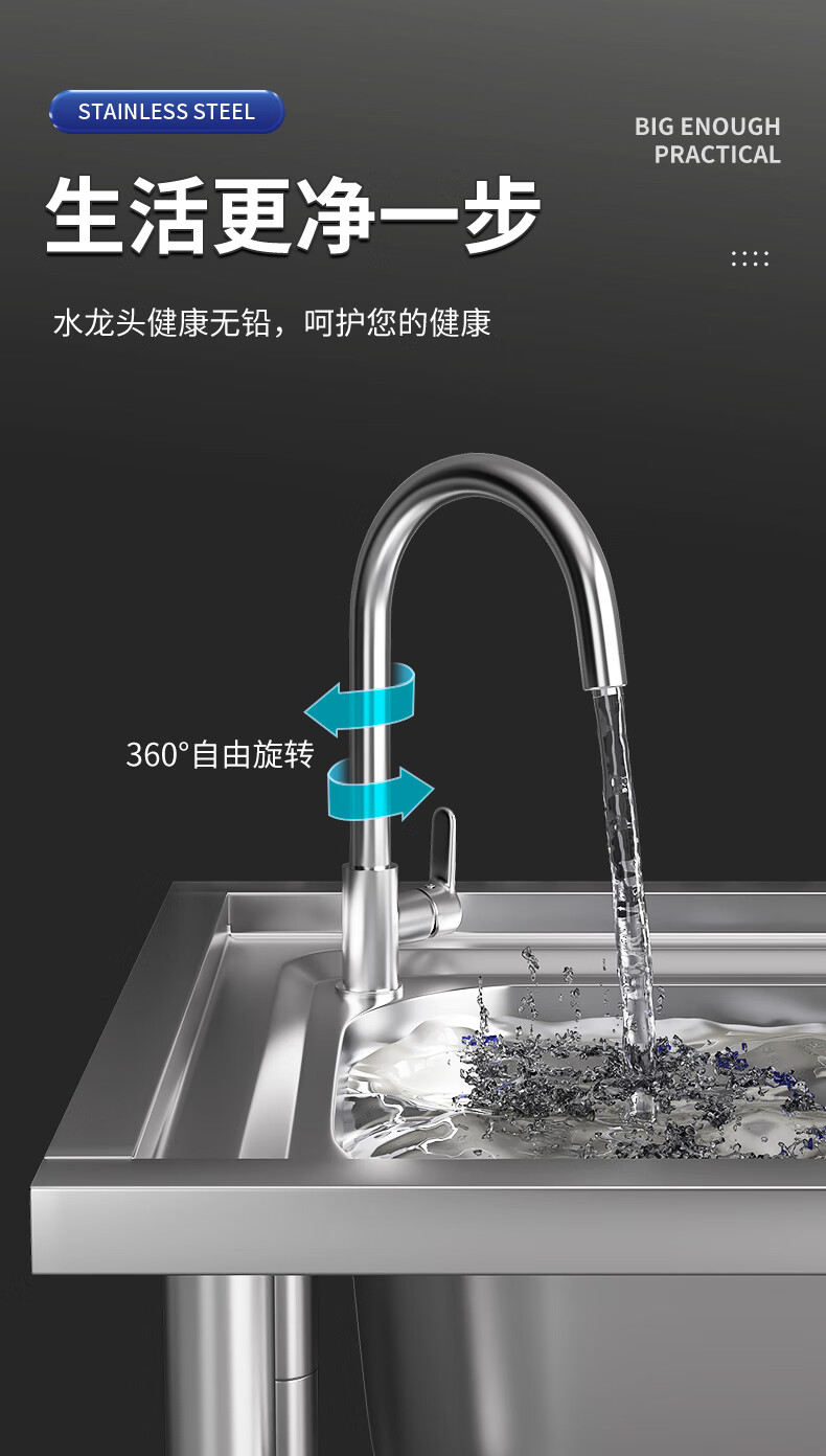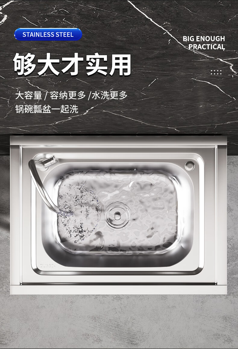 Xuan Ka Shi commercial kitchen sink 304 stainless steel wash basin with bracket integrated dishwasher household sink large single tank economical length 47 width 42 height 75 (no faucet)