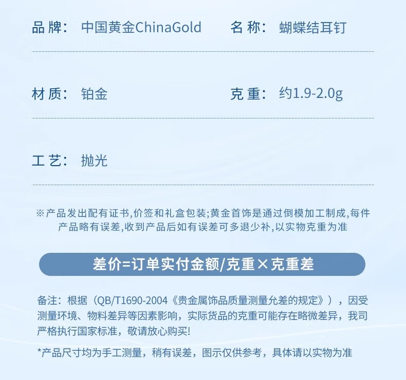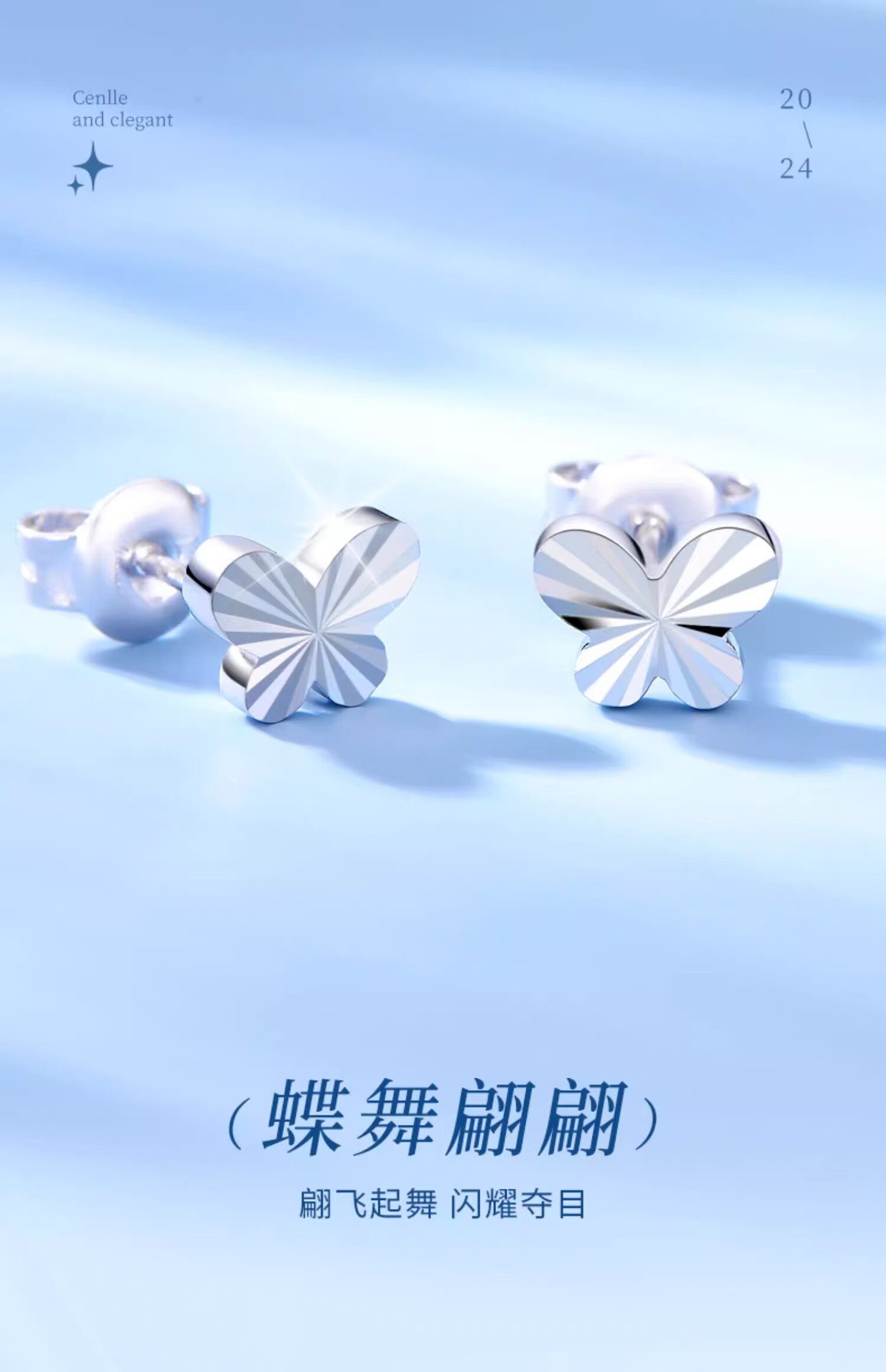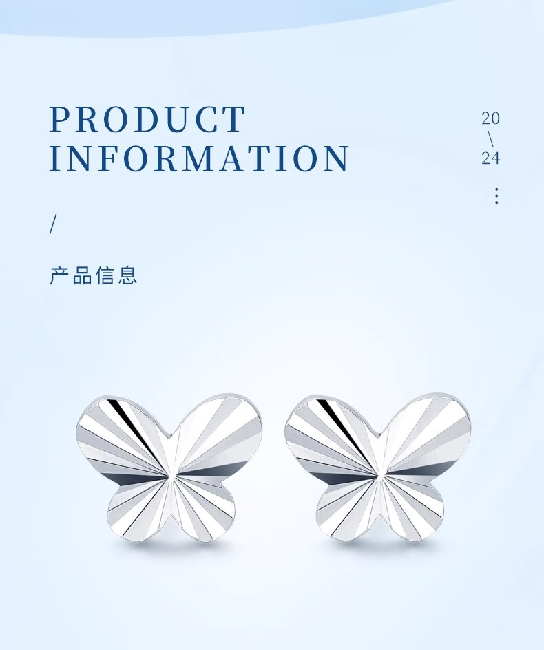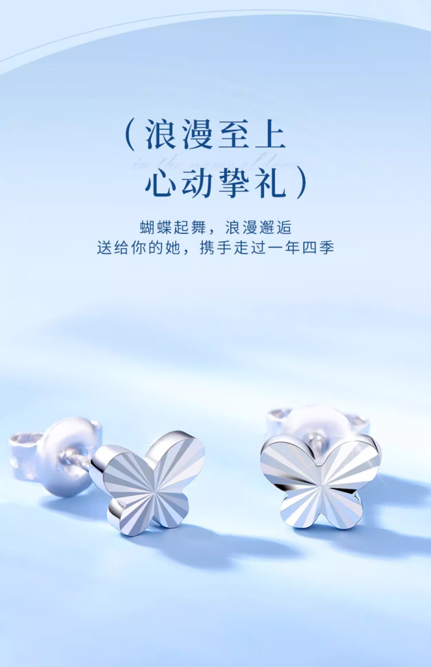 China Gold (CHINA GOLD) PT950 Platinum Butterfly Pian Pian Simple Earrings New Earrings Women's Earrings Wedding and Girlfriend Birthday Gifts PT950 Platinum Butterfly Pian Pian Earrings About 1.9g