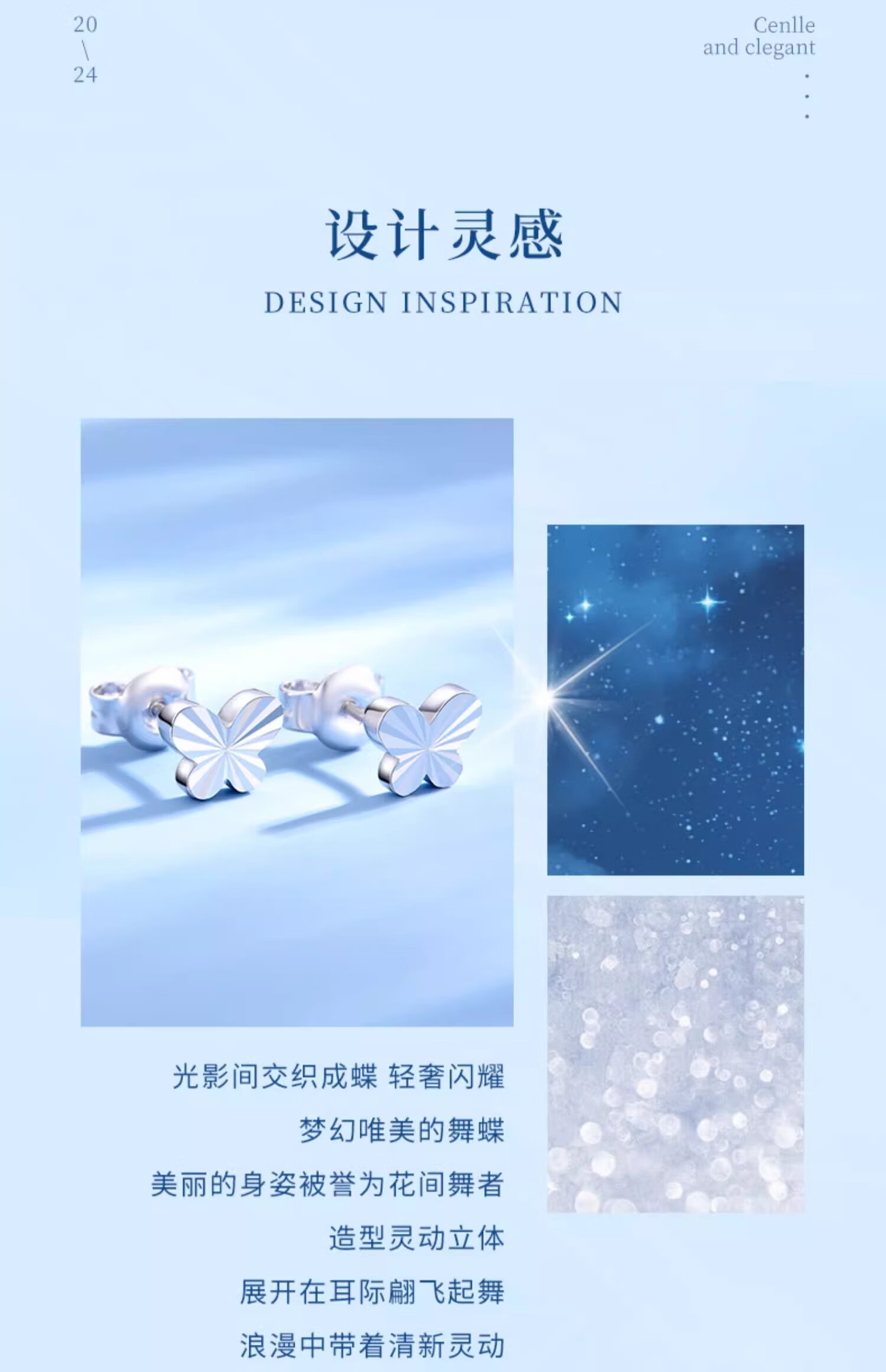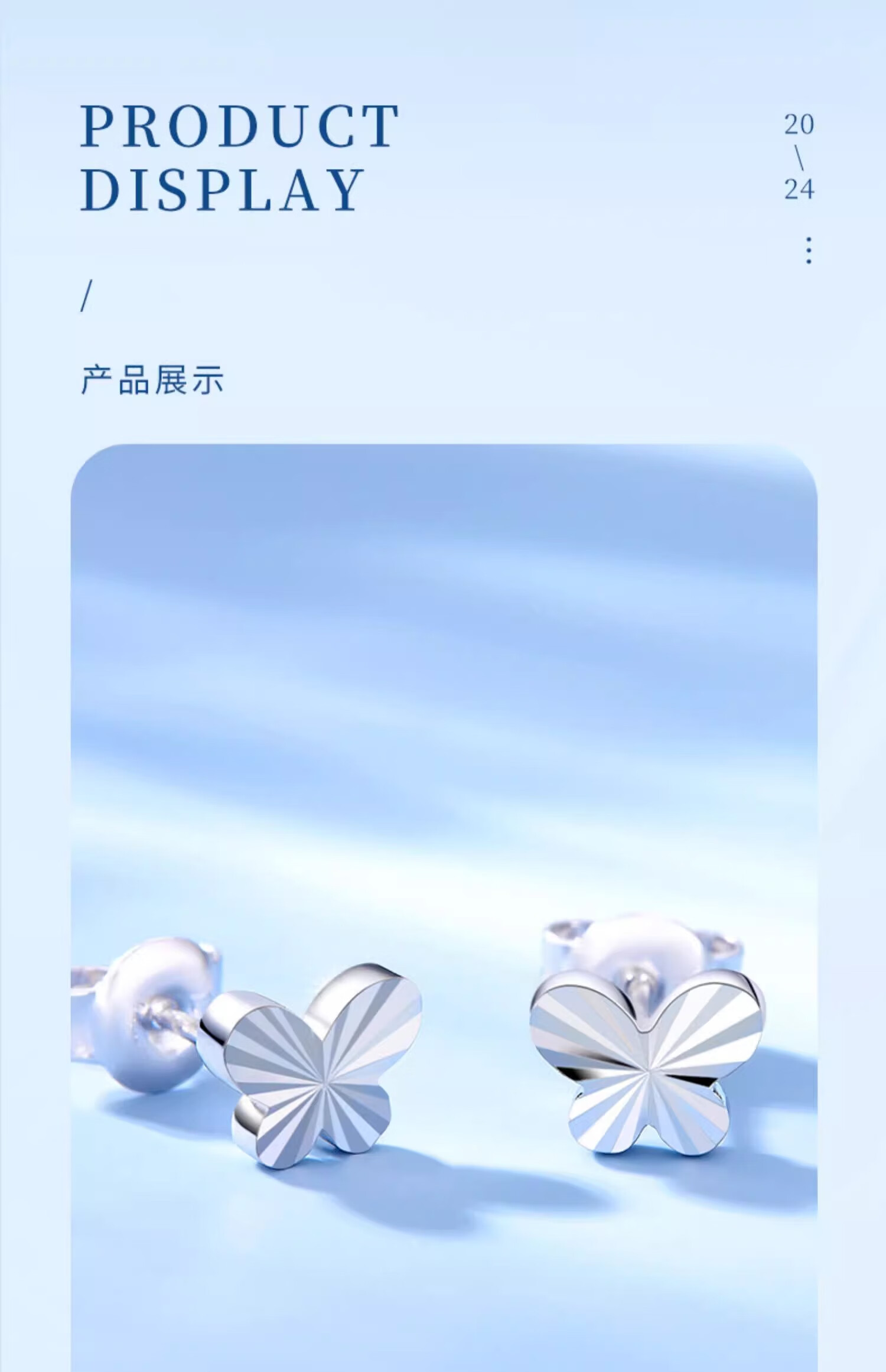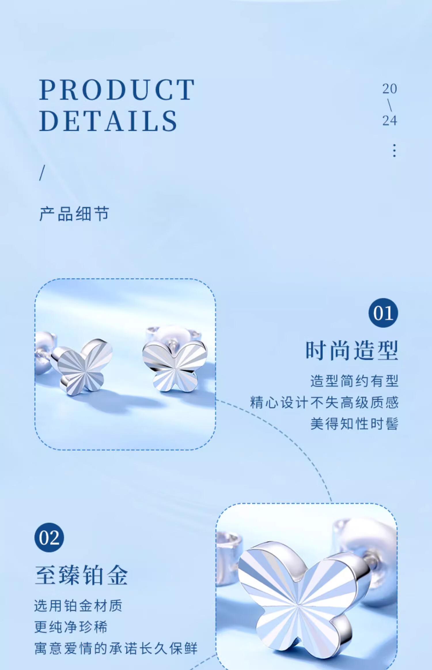 China Gold (CHINA GOLD) PT950 Platinum Butterfly Pian Pian Simple Earrings New Earrings Women's Earrings Wedding and Girlfriend Birthday Gifts PT950 Platinum Butterfly Pian Pian Earrings About 1.9g