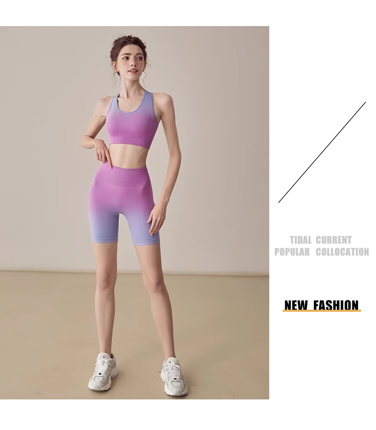 OIMG Yoga Clothes Set Female Fairy Qi High-end Professional Pilates New Style Yoga Clothes Female Dopamine Gradient Exercise Purple Pink Suit M 100-120Jin Jin is equal to 0.5kg