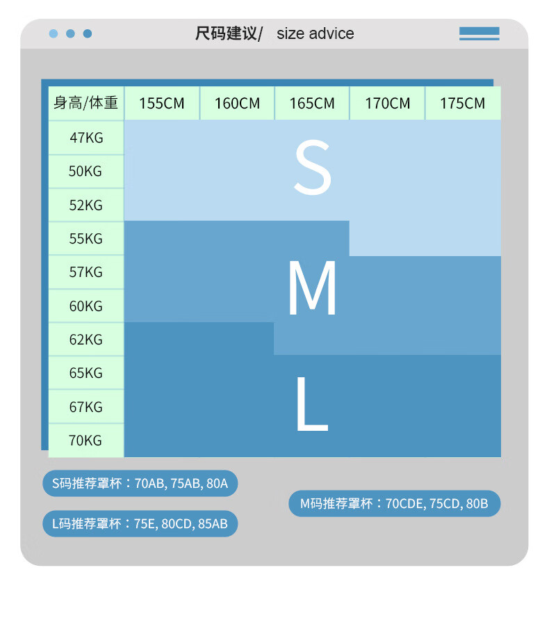 China (cm) 160-165/84-86 165-170 / 88-90 167-172 / 92-96 168-173 / 98-102 170-176 / 106-110