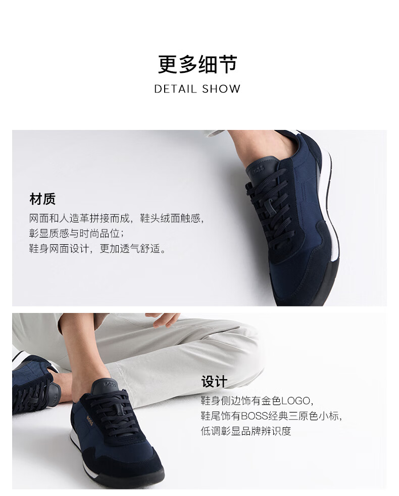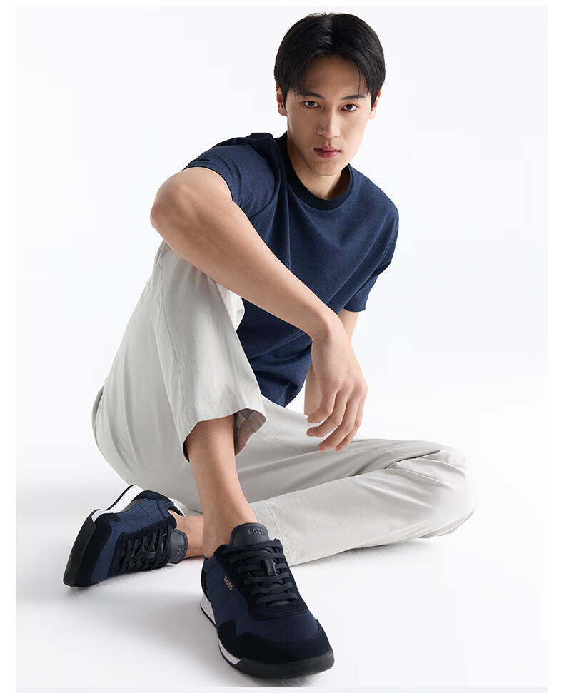 Hugo Boss BOSS New Year's gift Men's mixed material lace-up sneakers TTNM SL lightweight version 005-black 42