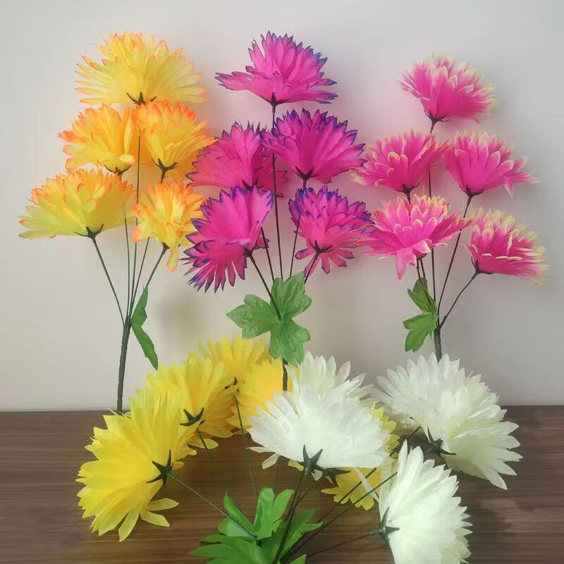 Zi Jiafu Qingming Festival artificial flowers artificial flowers chrysanthemum Juana plastic flower bouquet decoration ancestor worship supplies missing crystal chrysanthemum 1 piece