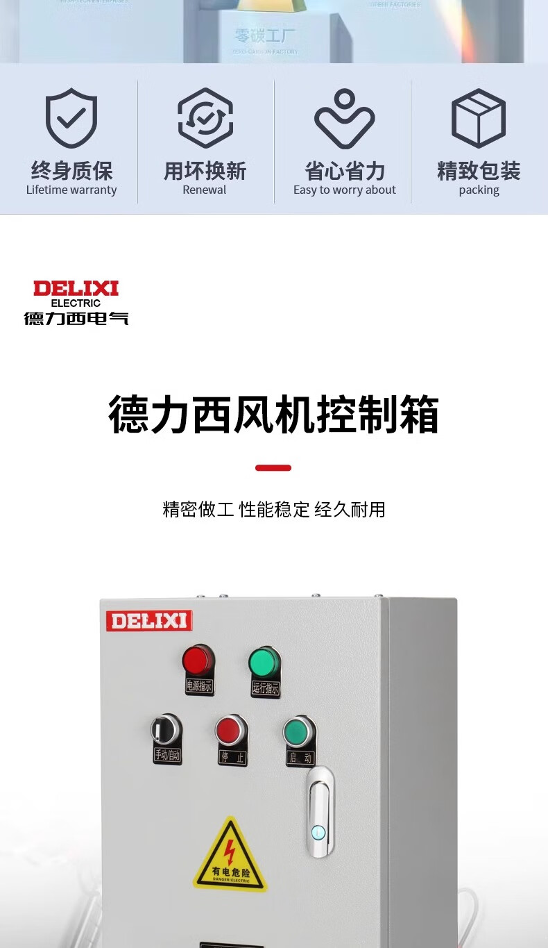 Delixi Electric Delixi fan motor control box 380V single-speed smoke exhaust household starter (Delixi model) three-phase motor thermal protection 11KW short circuit/overload protection