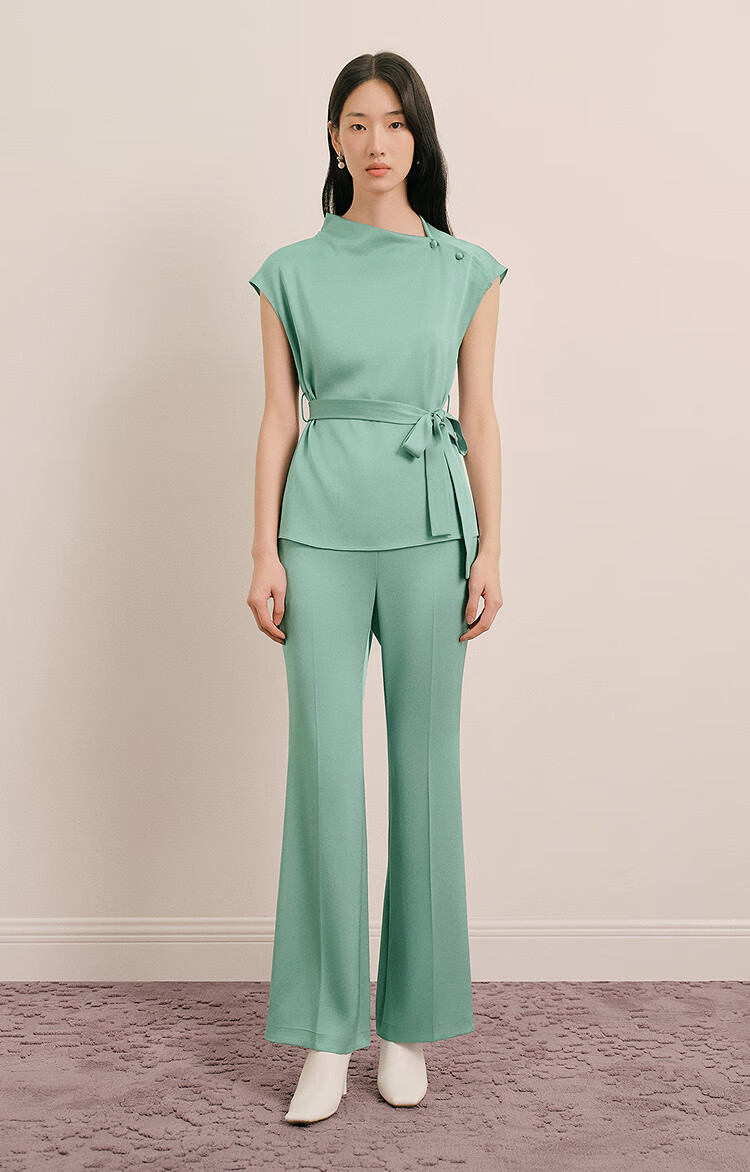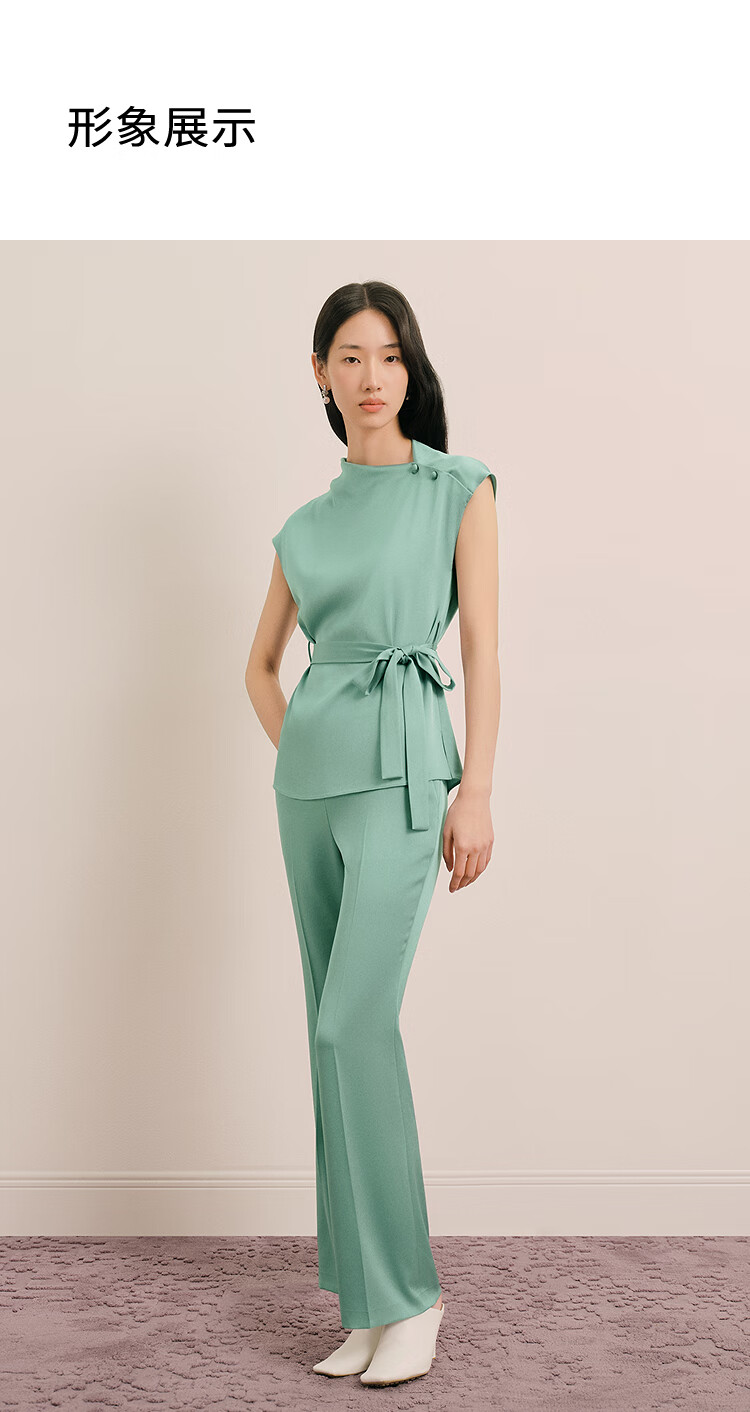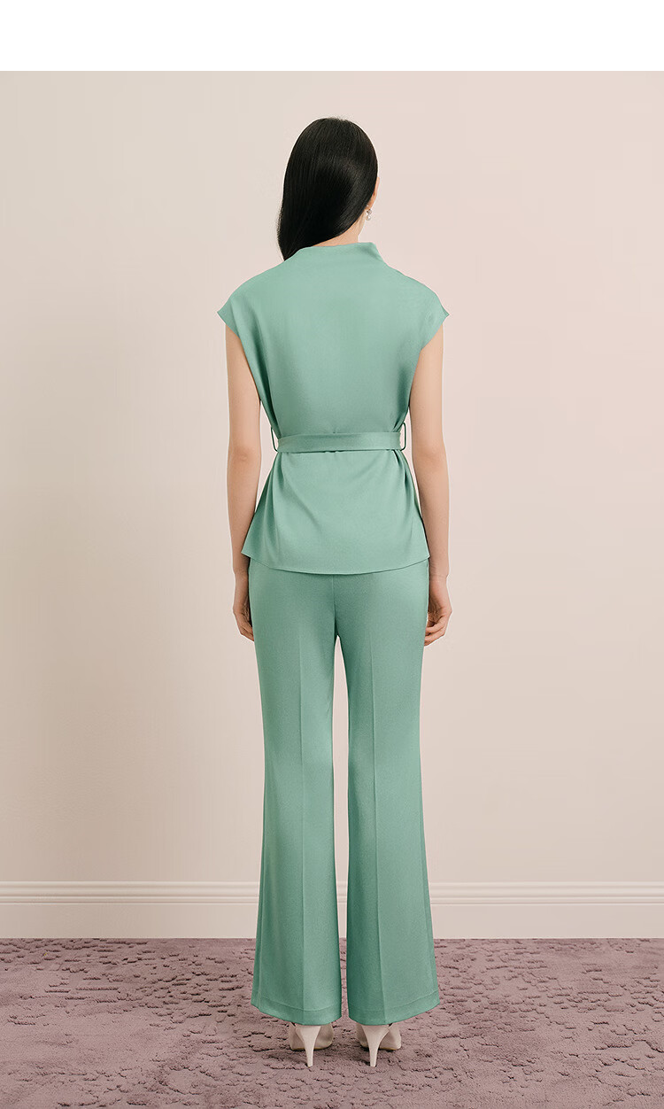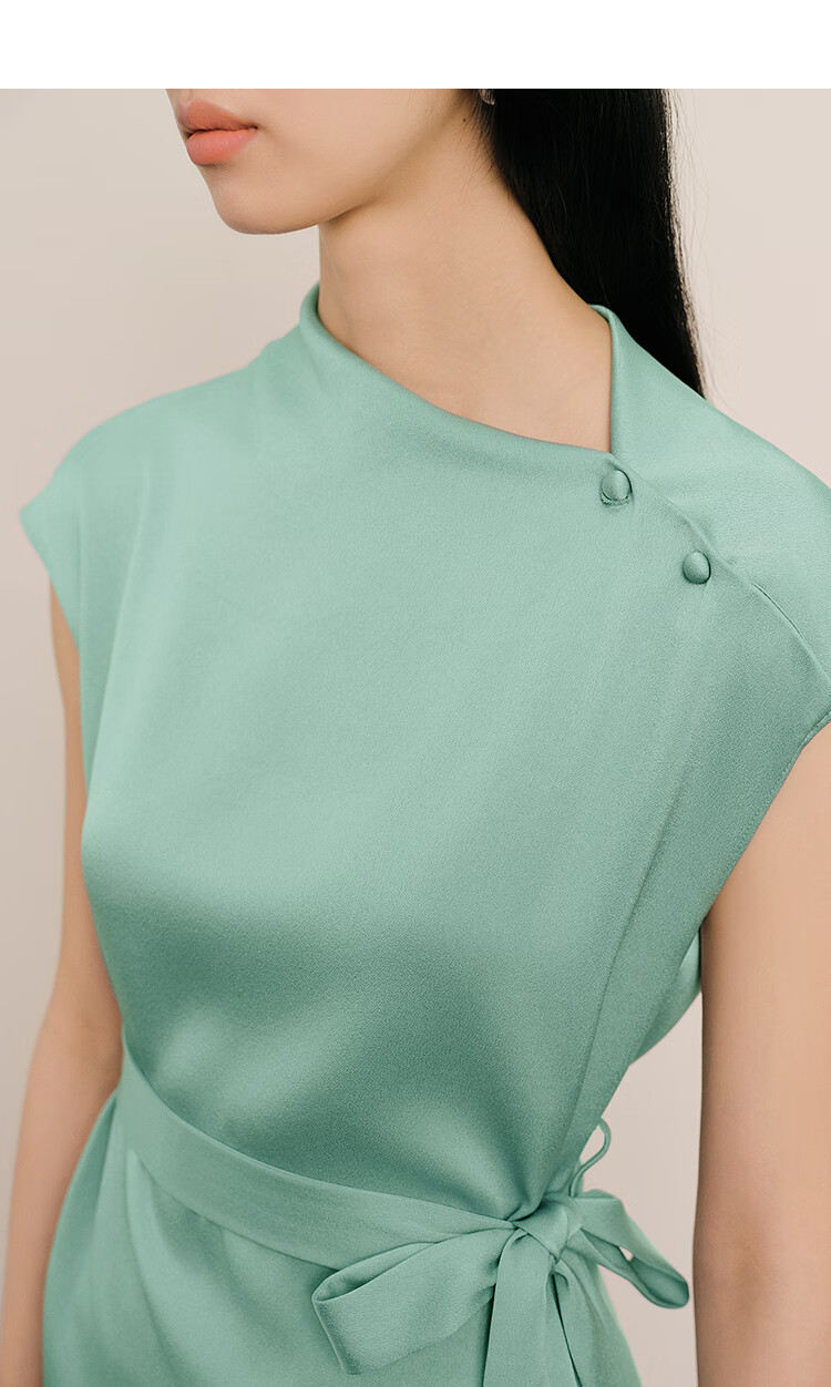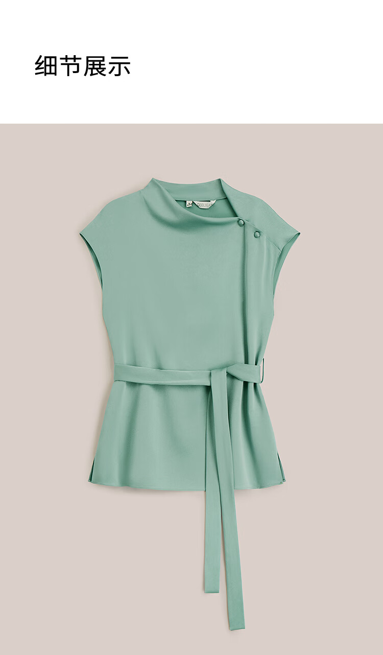 OBBLIGATO Olegado summer basin collar bag shoulder cap sleeves shoulder open button strap top green top S