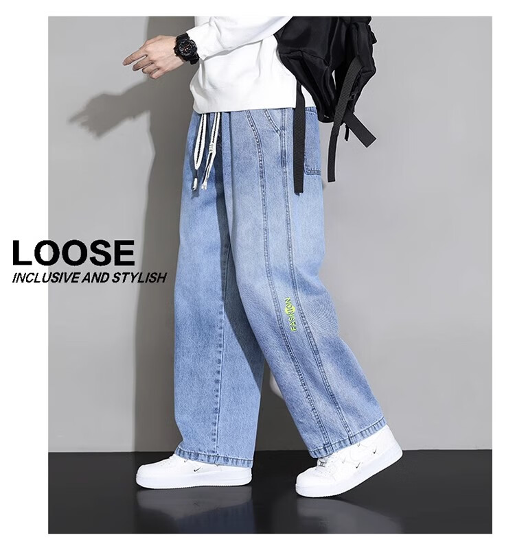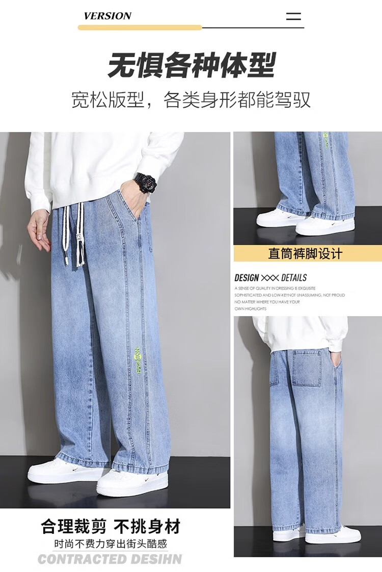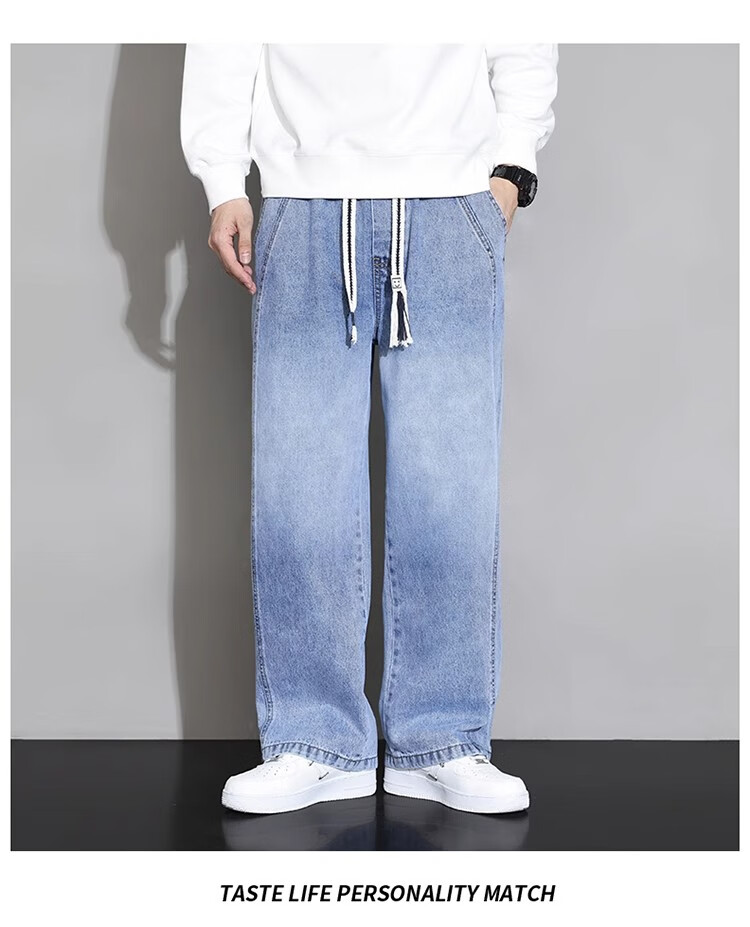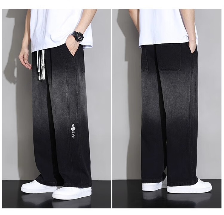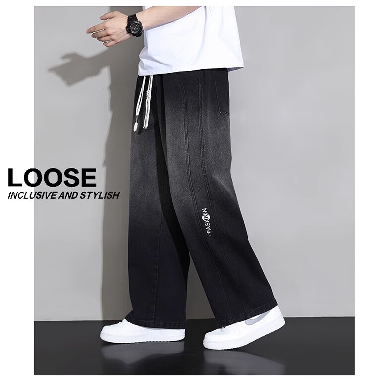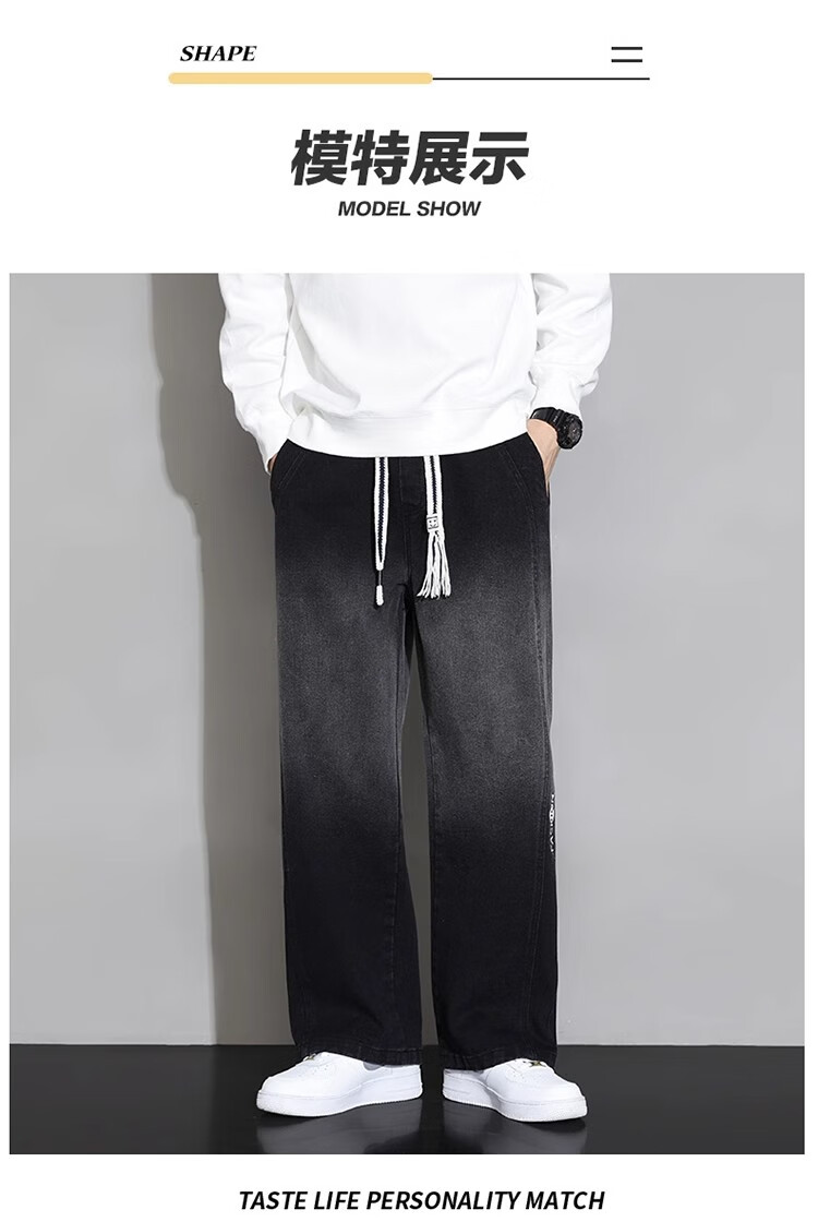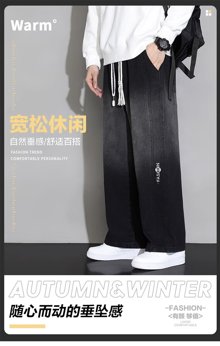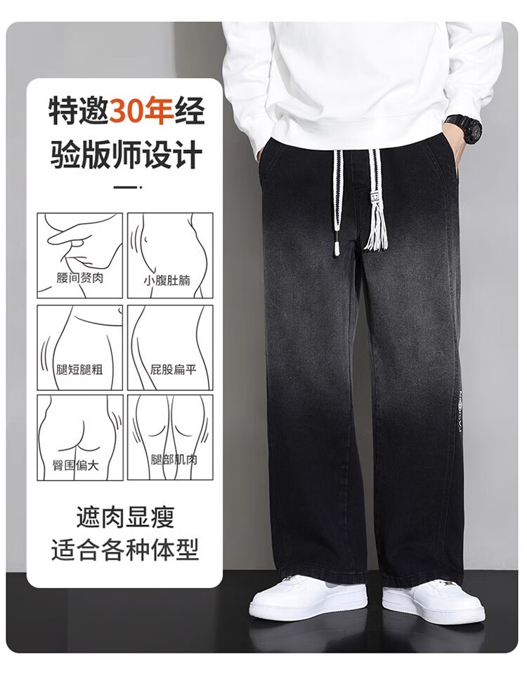 真维斯(JEANSWEST)大码直筒牛仔长裤子男款春秋款美式加绒宽松加肥加大胖子阔腿男裤 黑色 【刺绣】常规 5XL 建议190-210斤
